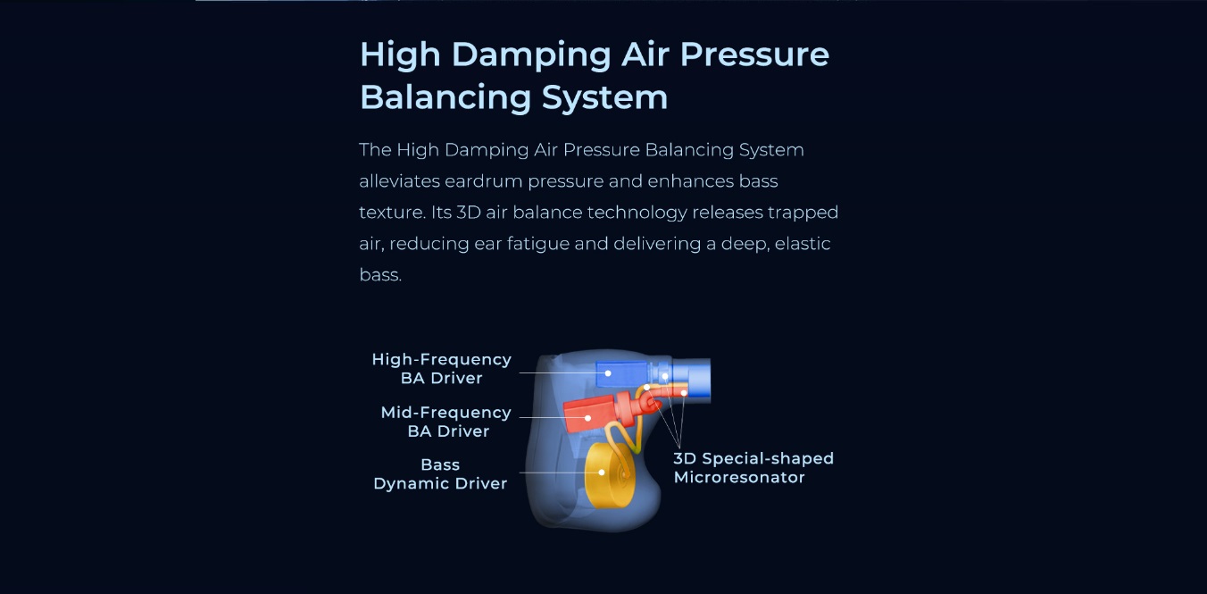 The Explorer’s hybrid design is built upon a foundation of 3D printed acoustic tubes and a special-shaped resonator, which work together to optimize sound delivery. The high-damping air pressure balanced system is designed to manage ear canal pressure, enhancing comfort and sound quality.