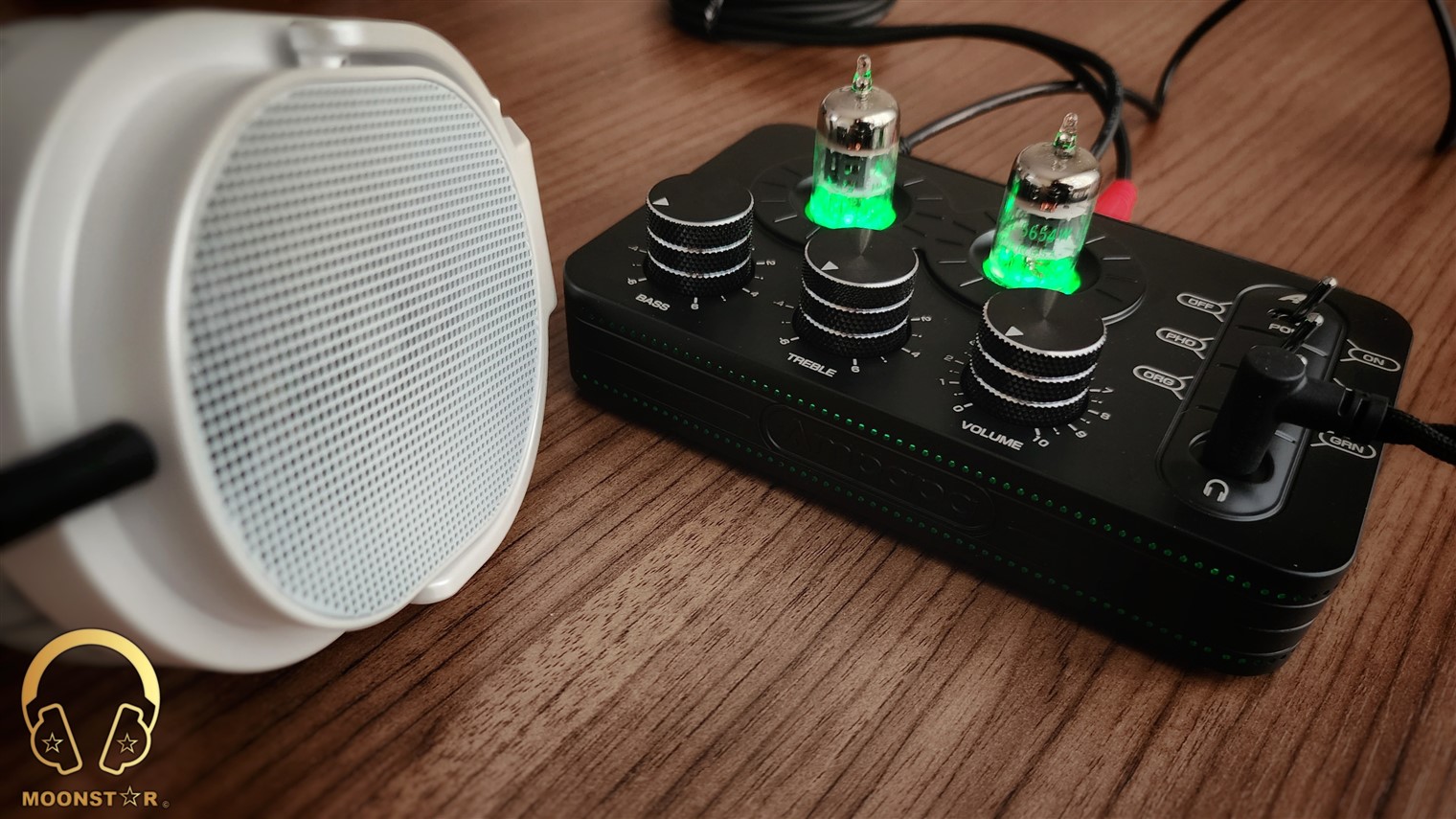 The Ampapa A1 offers a slightly relaxed and softened treble presentation, which is a main character of amplifiers with vacuum tubes. The treble extension is a bit shorter than normal with all headphones and IEM’s I have listen to it, while the sense of additional body and airiness is on an decent grade. Percussions do have a mildly bright tonality and are reproduced with a sufficient level of extension, while pianos do sound a bit more warmish, soft and yet controlled. The treble dial is a nice feature that helps to add some additional clarity and sparkle if needed, while it can sound a bit thin and unnatural towards 9 o’clock.
