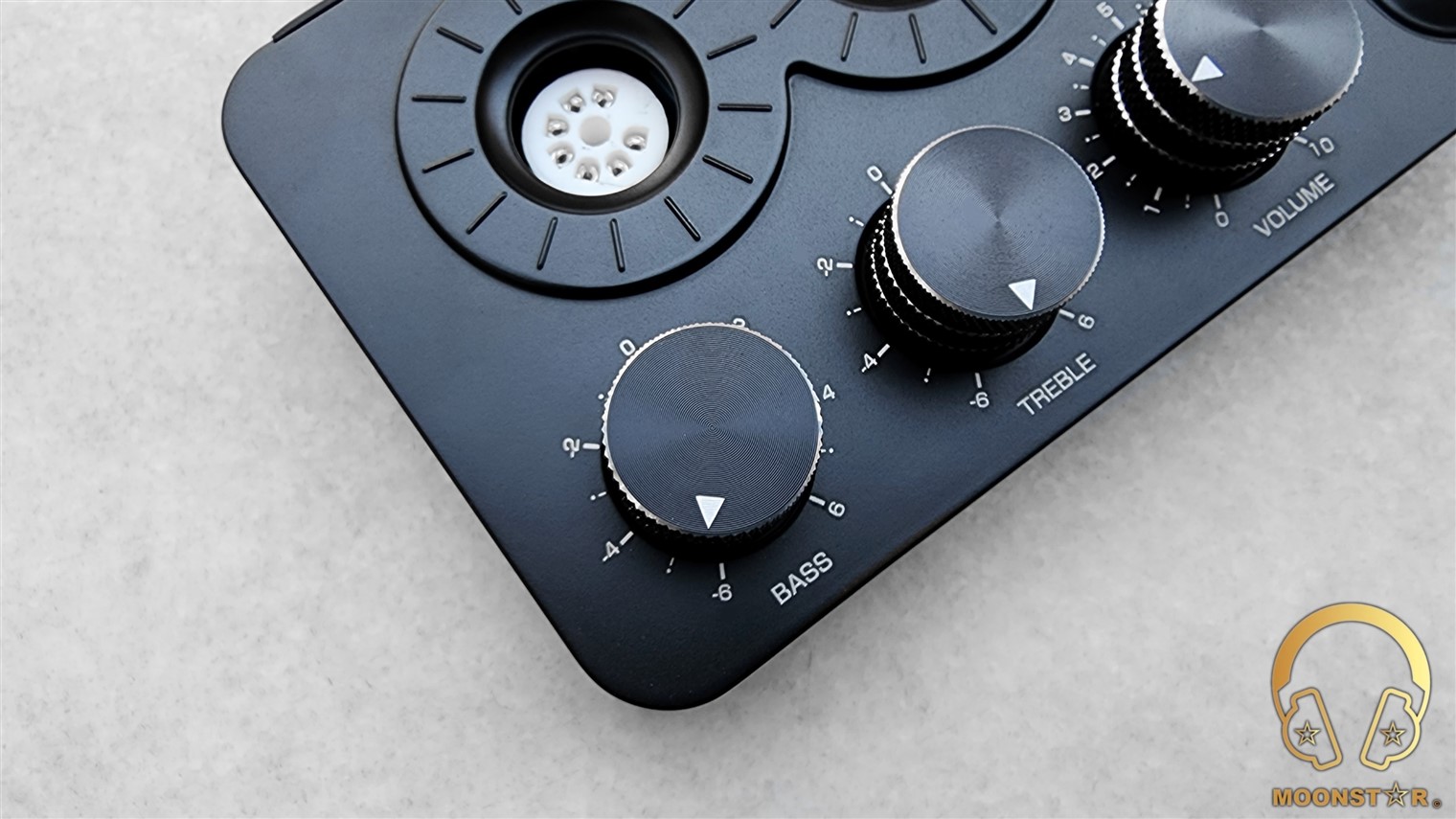 The aluminum alloy dials are dedicated for volume, bass and treble adjustment, which do offer a nice click and grip.