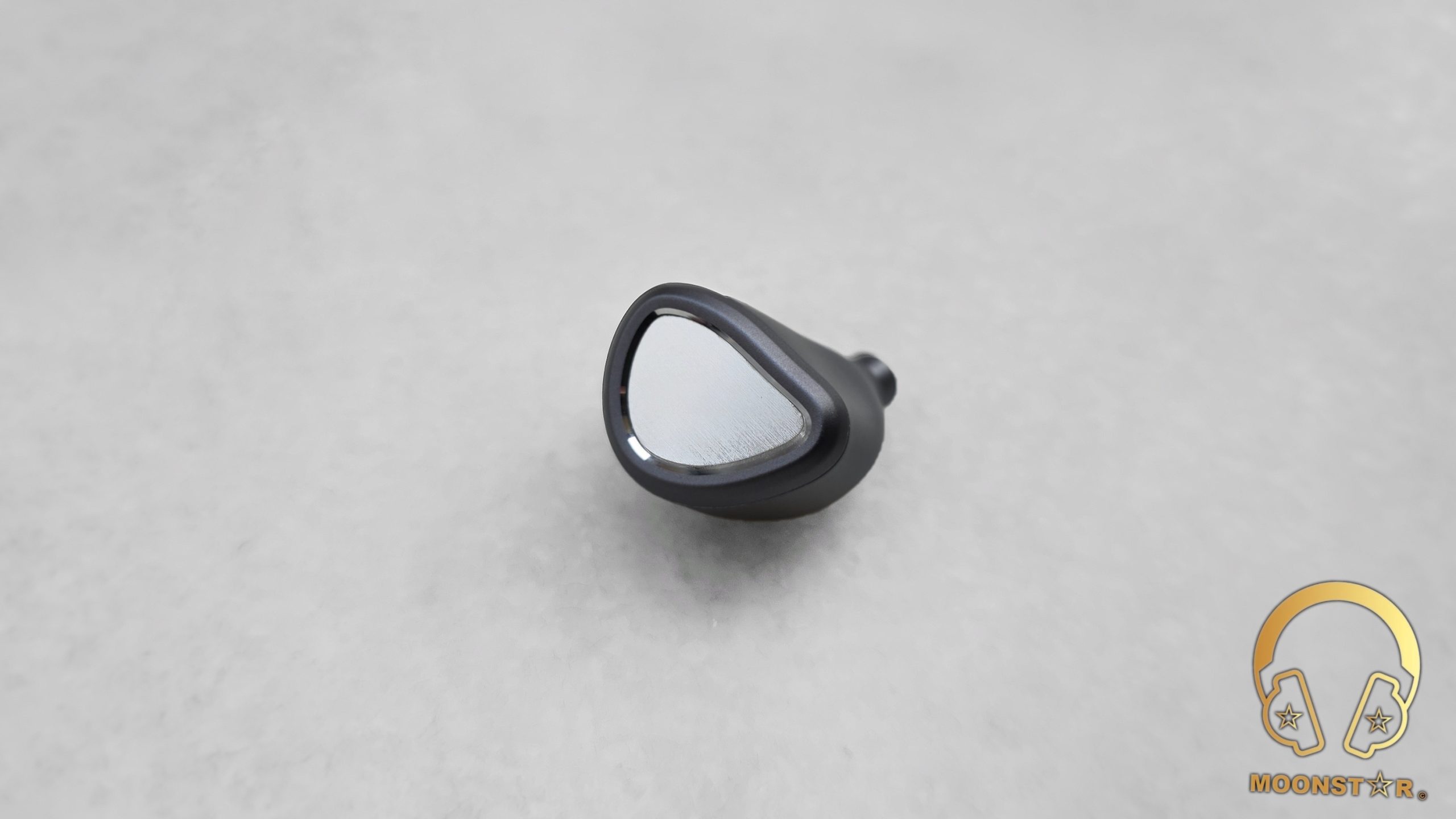 The ASTROTEC Archimedes’ design immediately highlights precise execution, with every element contributing to a cohesive aesthetic and functional purpose. The earpieces are robustly constructed from high-precision CNC machined stainless steel cavities, indicating the use of durable and precisely manufactured materials for its core structure. The precision CNC machining process is distinctly evident in the clean lines and component integration of the shell, which features a clean, textured finish. The overall form factor of the monitors is slightly larger than the average in-ear monitor currently available in the market. The finish on the main body of the earpiece is a dark grey, providing a uniform appearance that is less prone to showing fingerprints. Overall, the design presents an aesthetic with simple, bold, and curved ontours.