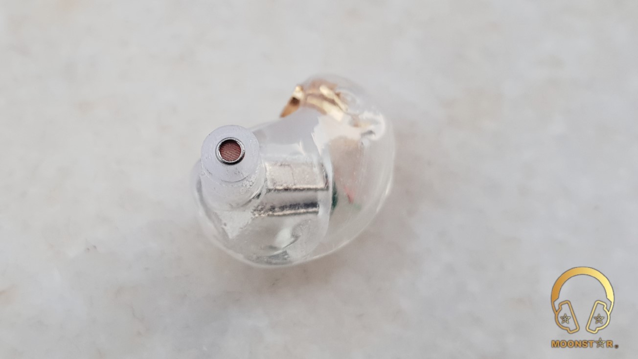 On the top of the monitor is the MMCX (Micro Miniature Coaxial) female connector. The fit between the cable and the connector on the monitor is pretty tight.