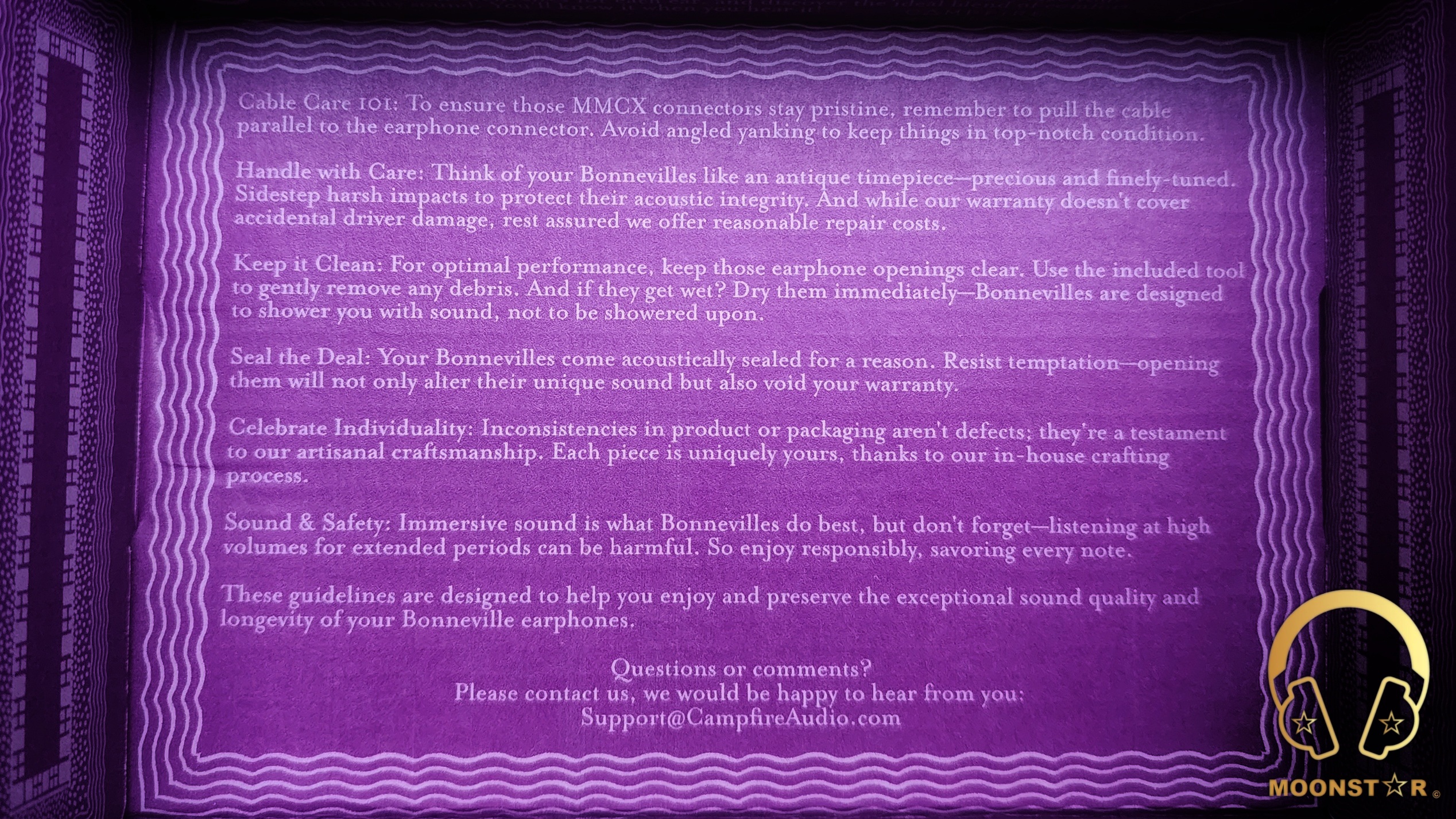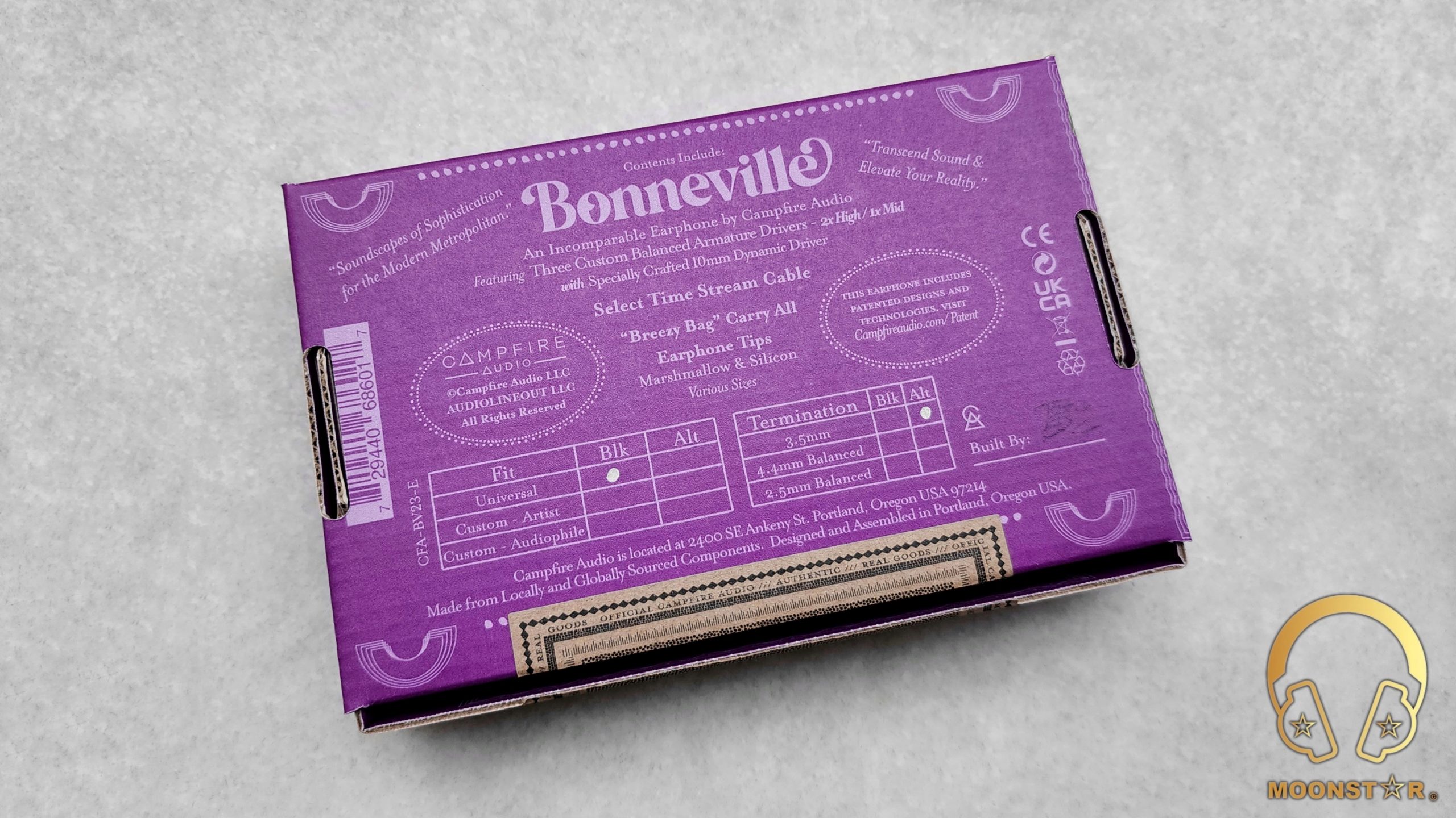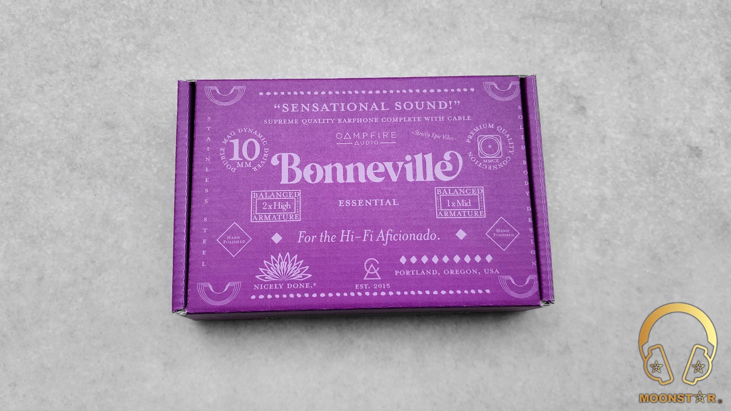 The Campfire Audio was offers always a very unique unboxing experience and the Bonneville is no exception. The Bonneville Essential edition comes in a pretty minimalistic but fancy looking small cardboard box in purple color with decorative elements like stars, lines, and other icons enhancing its visual appeal. The design of the box evoked a sense of a vintage and retro vibe. There’s also a mention of “CHAPTER ONE” at the top left corner indicates that it is a part of a new series.
