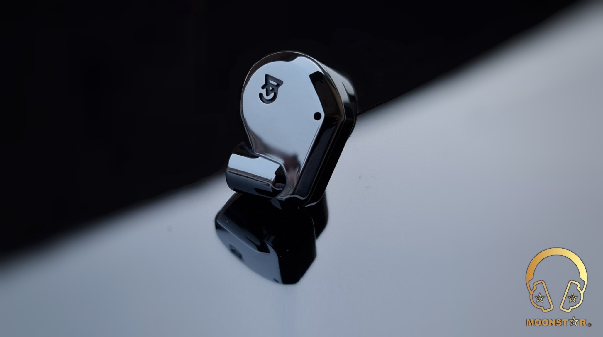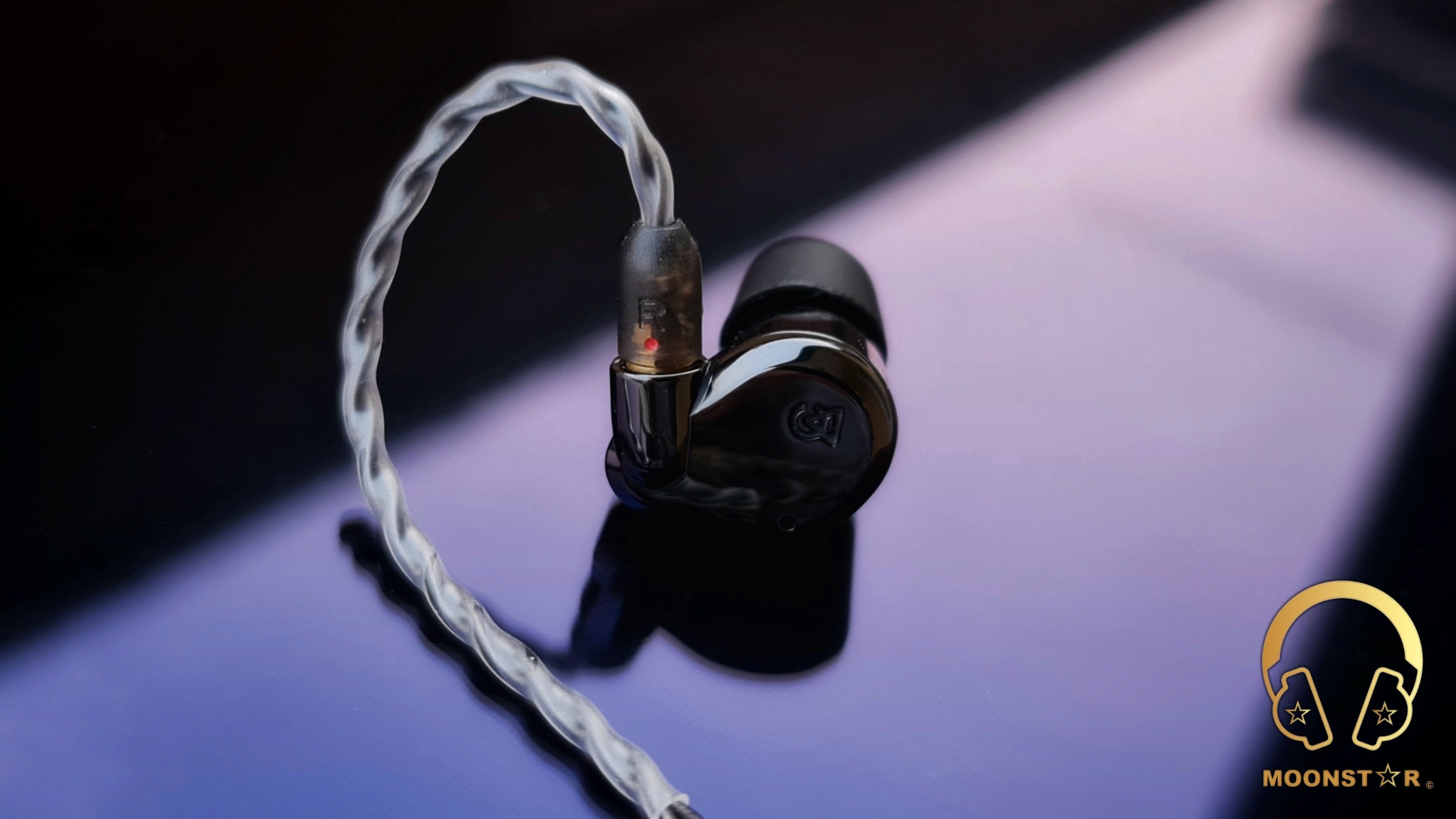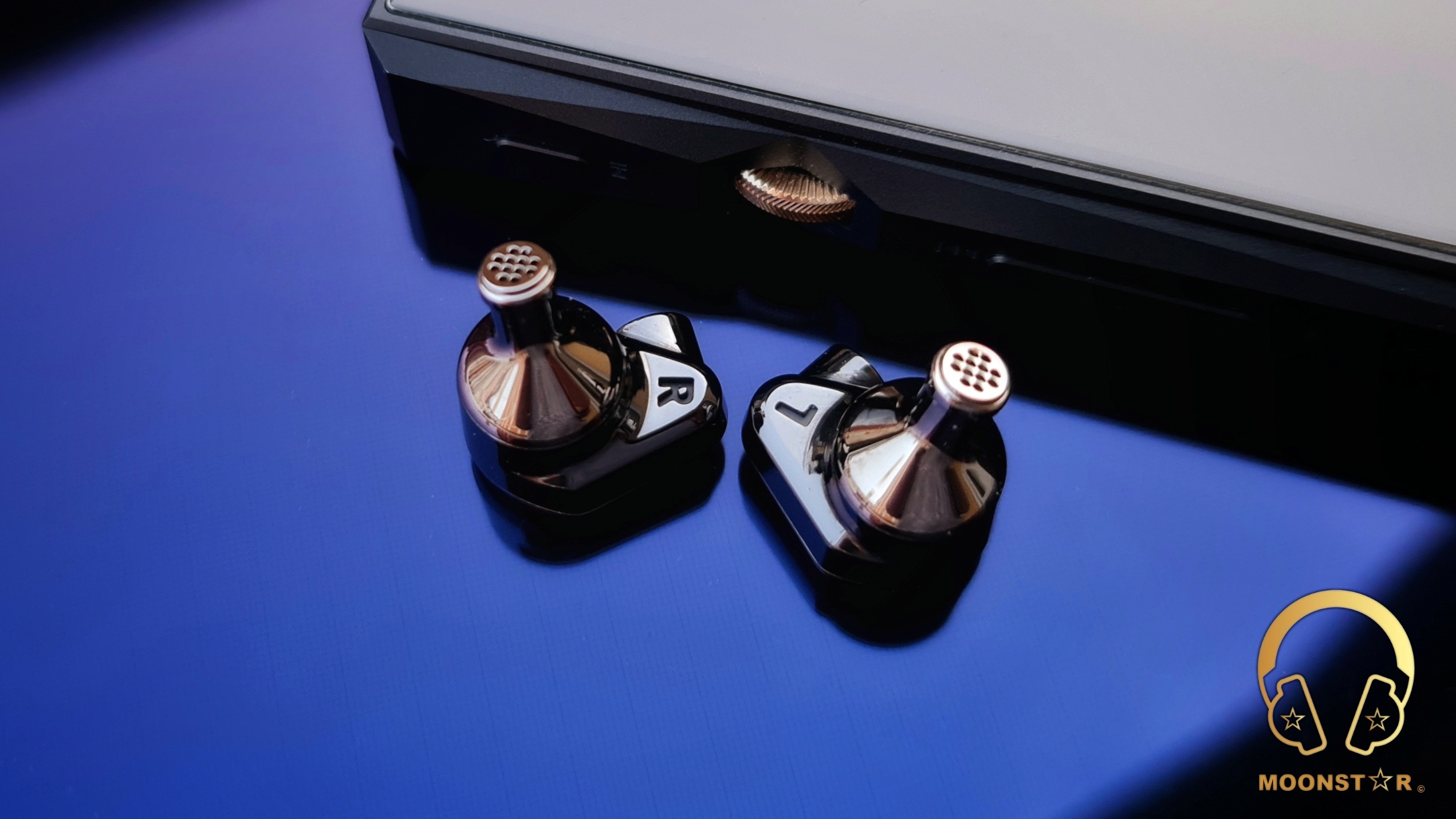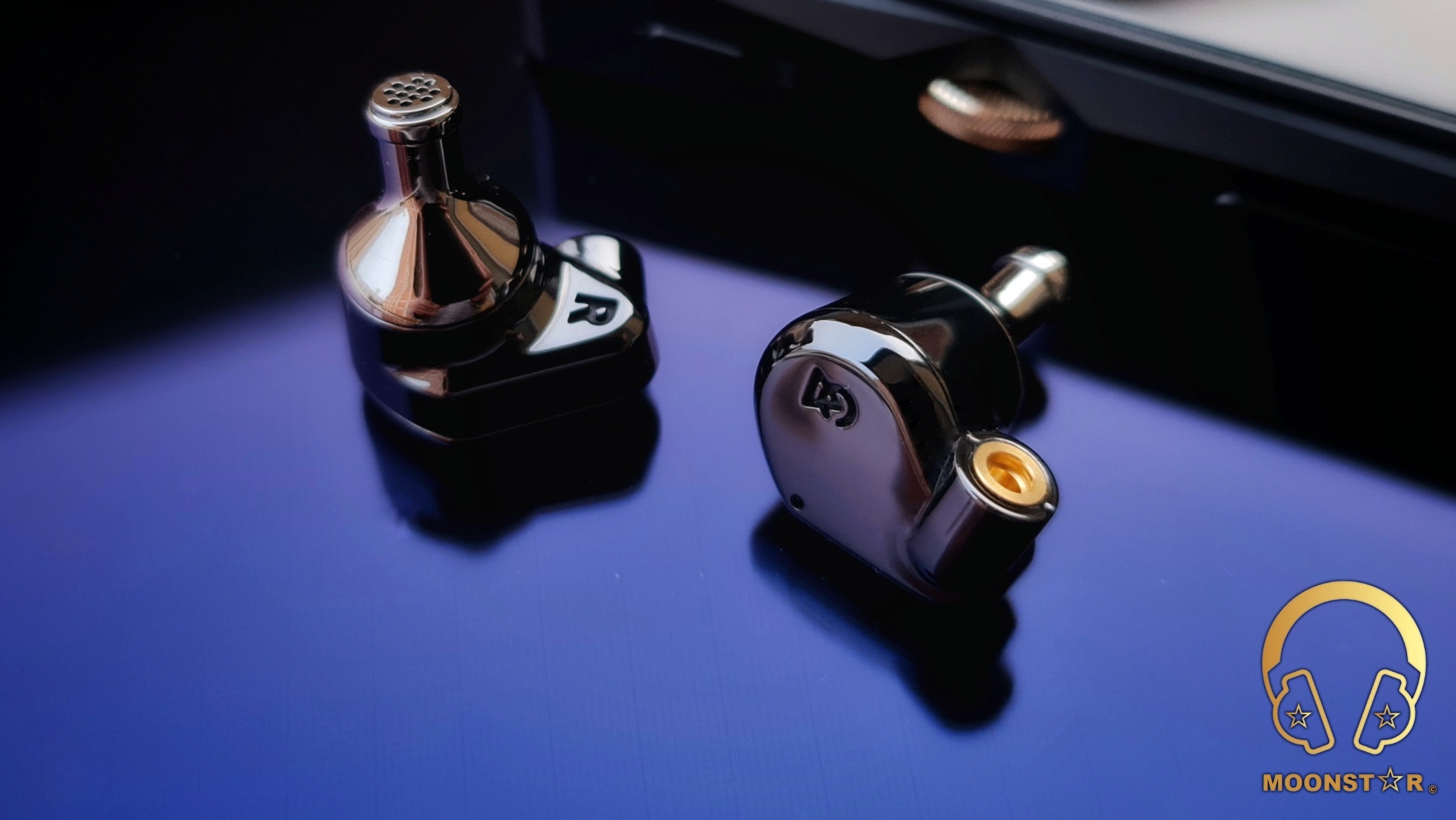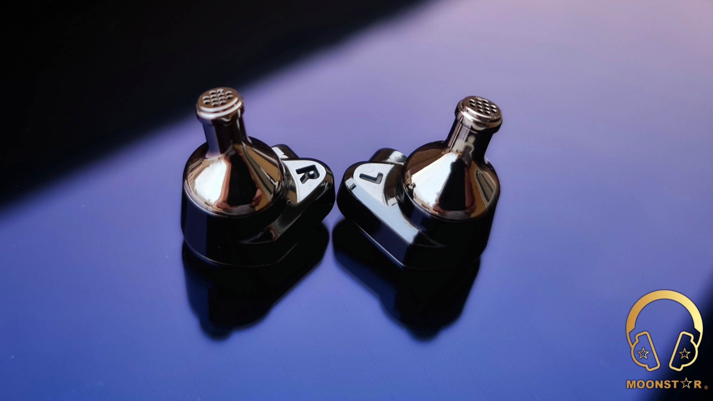 The rear surface of the monitor shell sports the L (Left) & R (Right) markings and the sound nozzle.