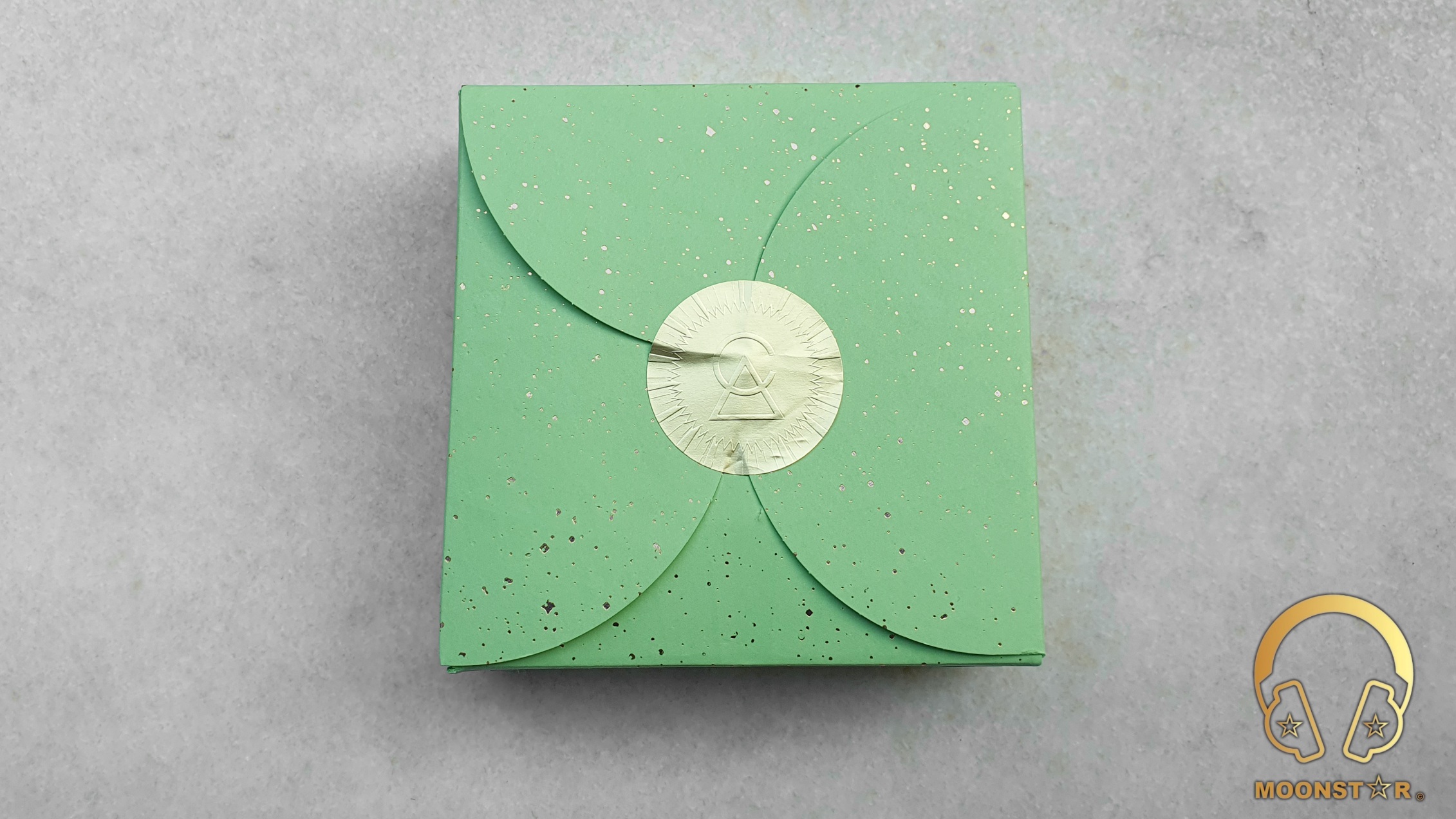 The Campfire Audio Vega Honeydew comes in a very similar square shaped box like the Satsuma, which in light green color instead of turquoise like the Satsuma, which has a label on the top that sports the product illustration of the product.