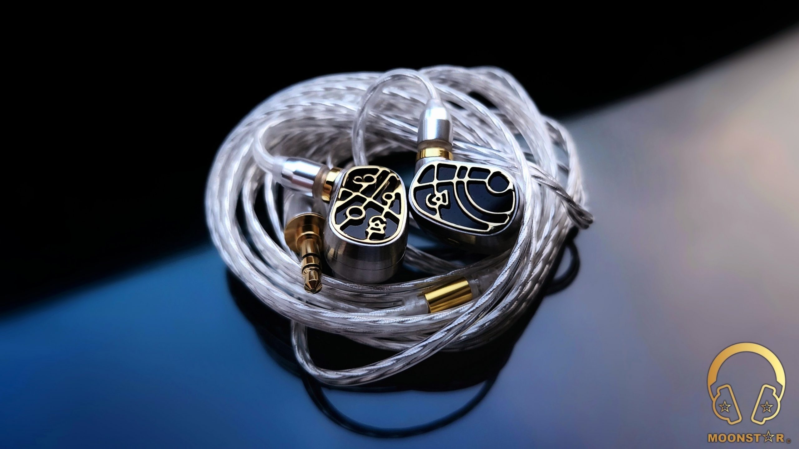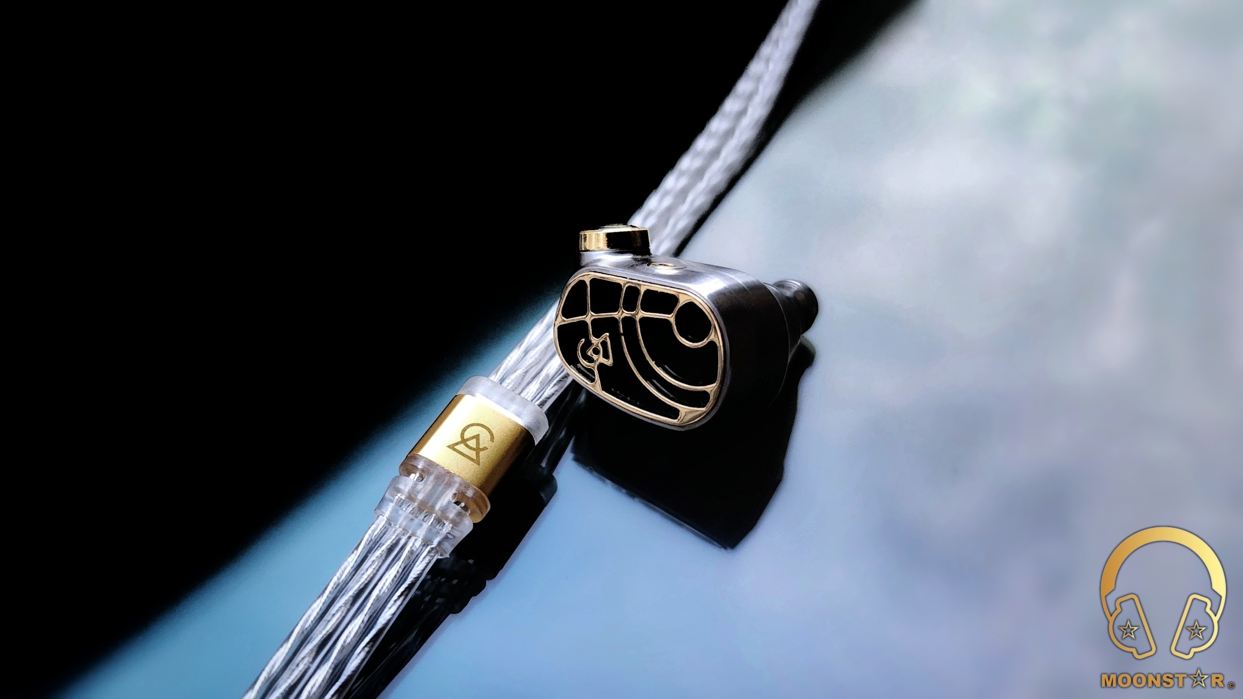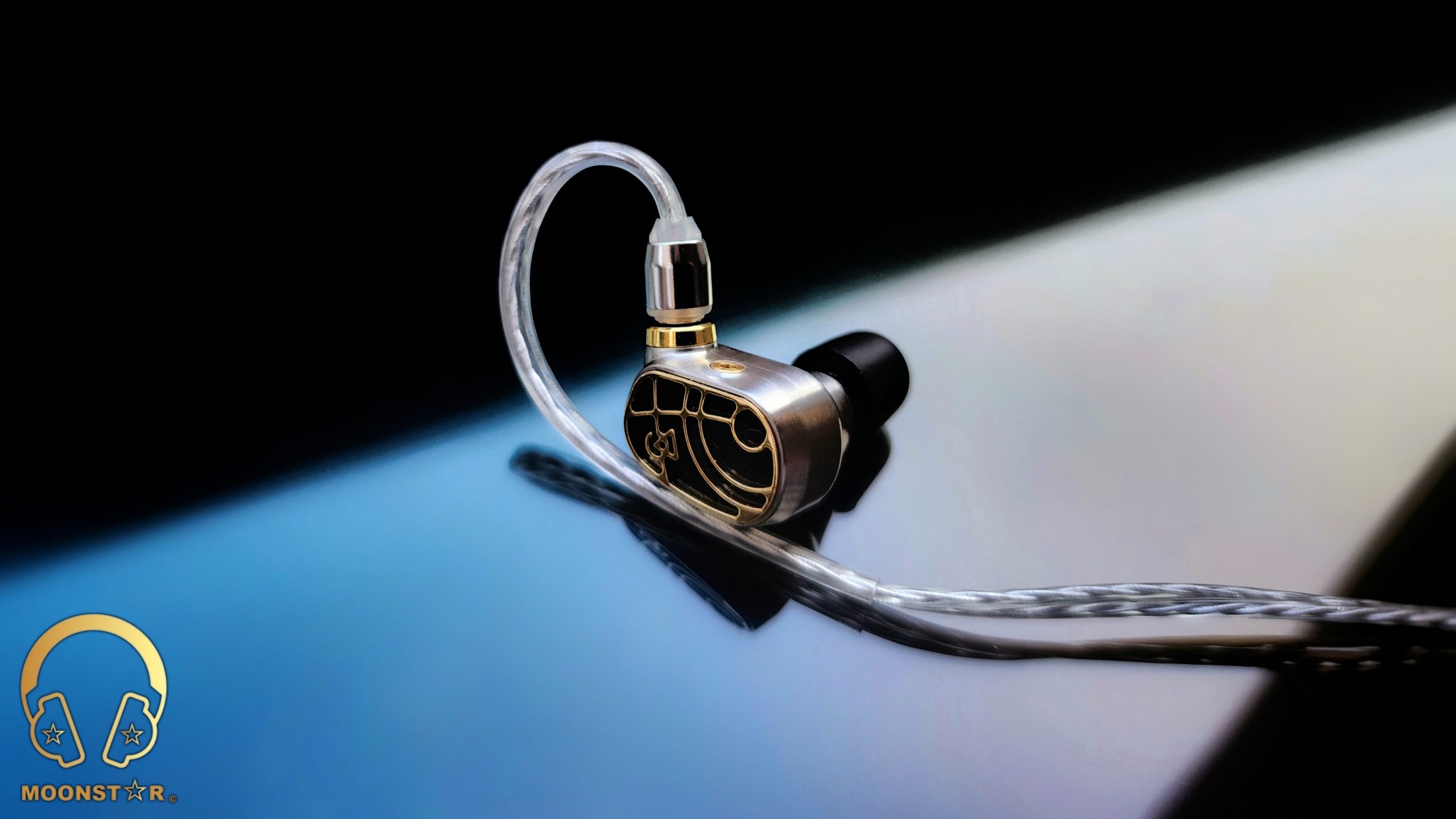 The monitor housing is a combination of Brushed Stainless material with a “Brass Accents Custom PVD Gold Inlay in Laser Cut Acrylic. The Solaris Stellar Horizon features a newly developed Hybrid Driver configuration, which is a combination of 3x Custom Dual-Diaphragm Balanced Armatures + 1x 10mm ADLC Dynamic Driver with a special Radial Venting” design. The new Radial Venting surrounds the 10mm ADLC dynamic driver, creating a greater air volume and expanding the physical space in which the driver operates. This creates a greater soundstage and a more even performance of the dynamic driver.