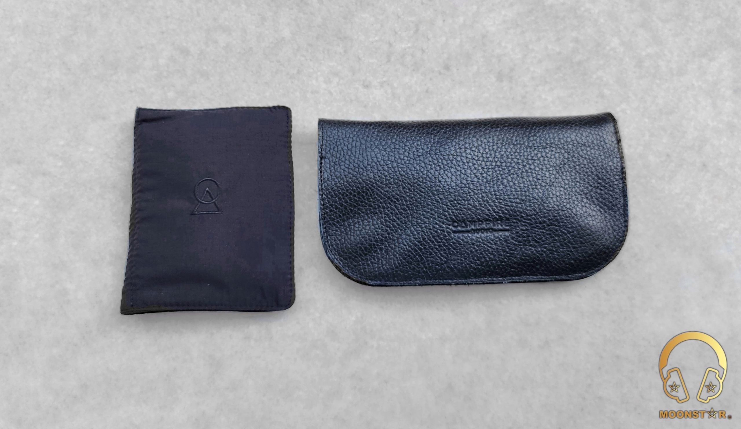 Another protective storage option is the double pocket soft pouch in black color where you can put the monitors and the ear tips, a cleaning tool and the pin with the CA Logo.
