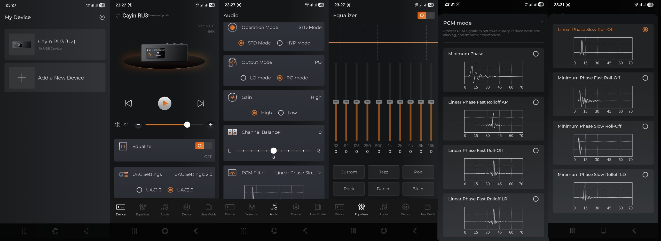 The RU3 supports the standard UAC 2.0 protocol for plug-and-play functionality across Windows, macOS, Android, and iOS. Beyond basic operation, the device introduces the Cayin Control Application, an optional feature that allows users to fine-tune the listening experience. This application provides access to a precise 10-band high-sensitivity lossless EQ, offering unparalleled sound customization directly from the connected smartphone. This feature significantly enhances the utility of the RU3, moving beyond a simple “plug-and-play” experience to a personalized tuning platform.