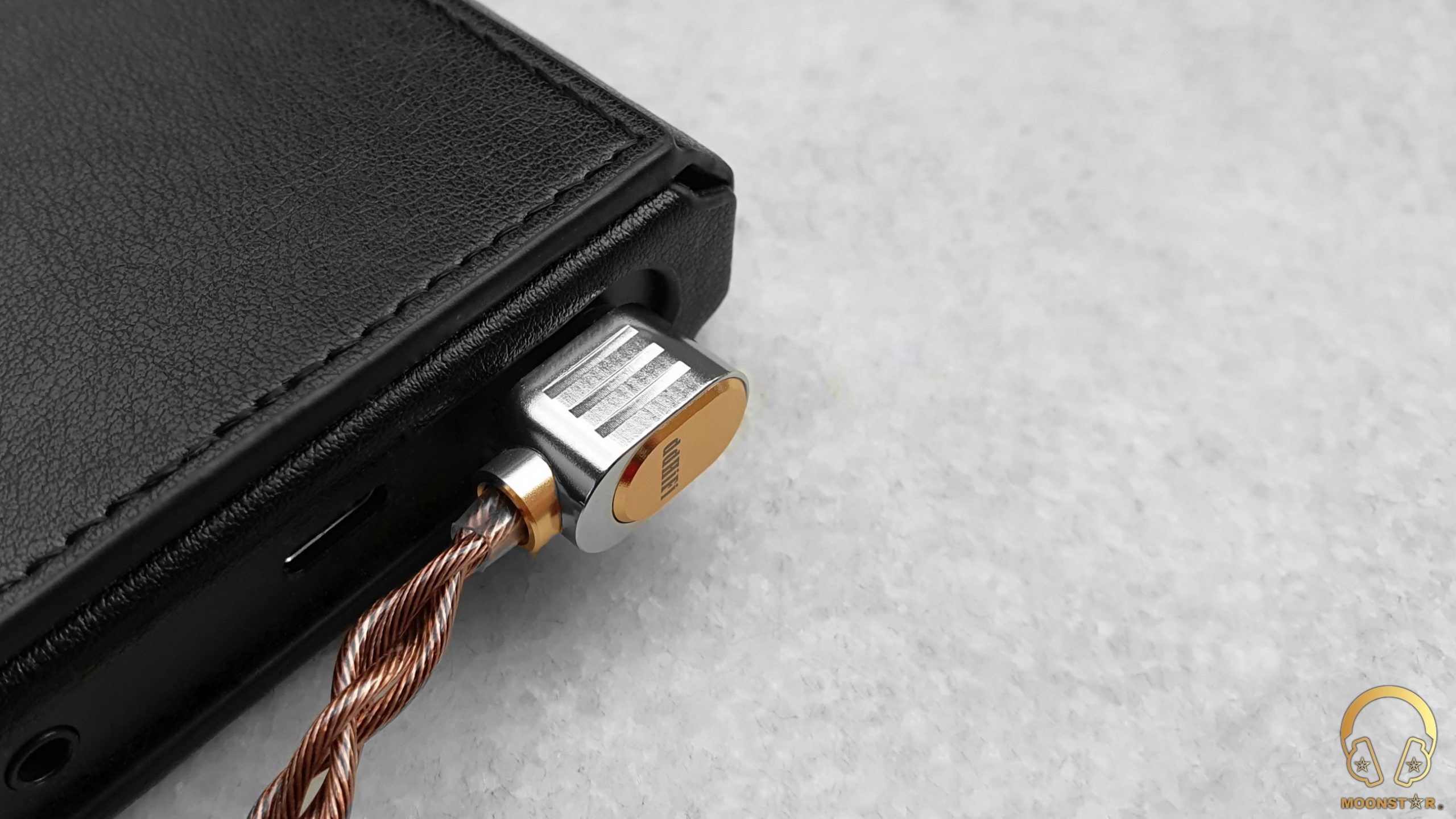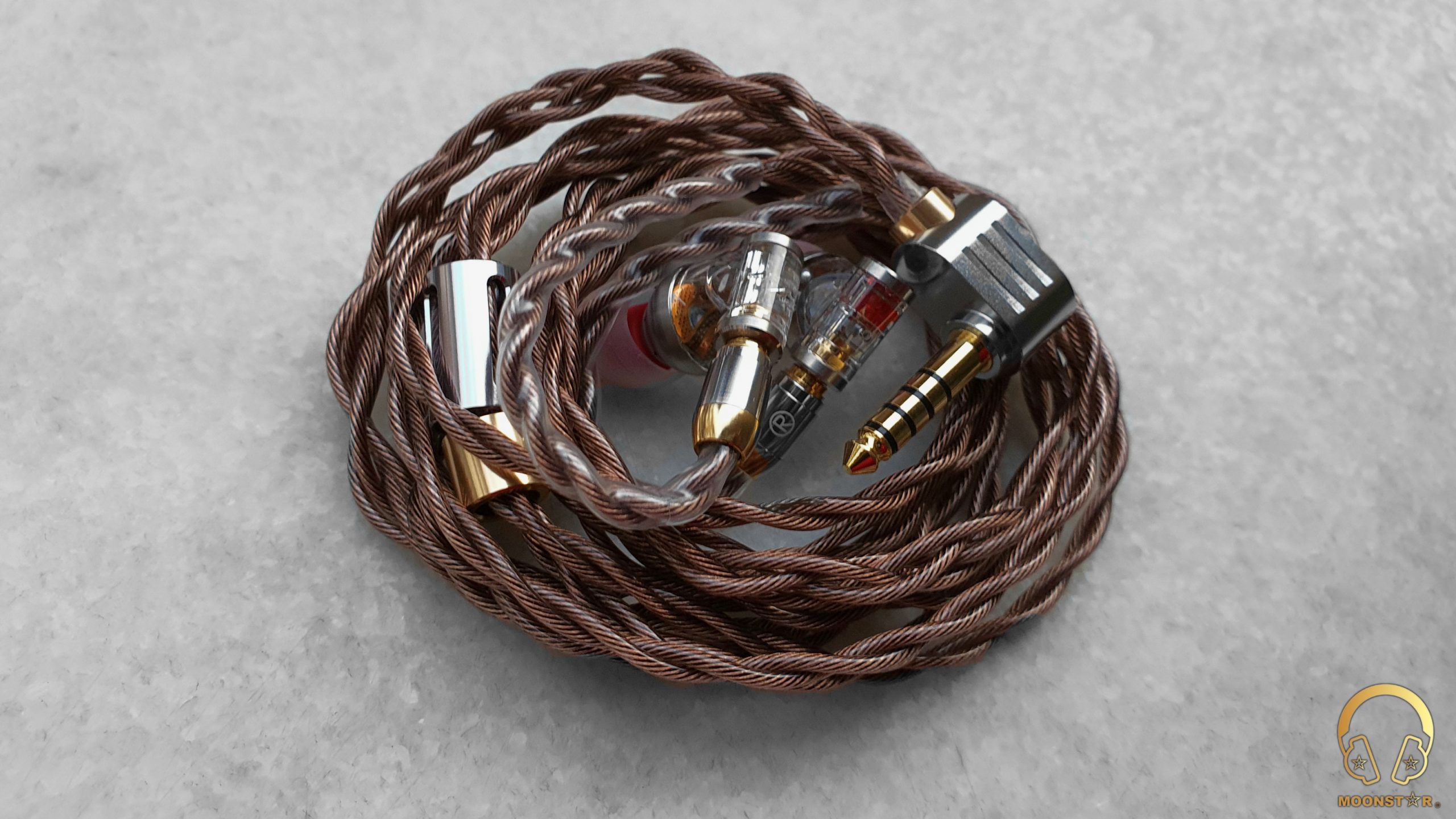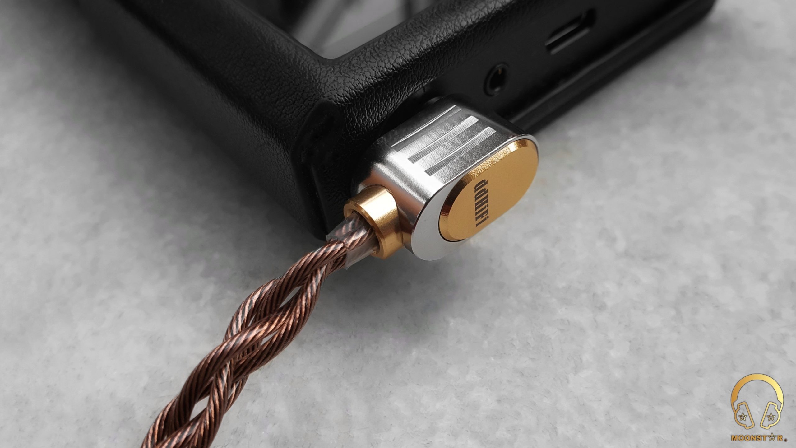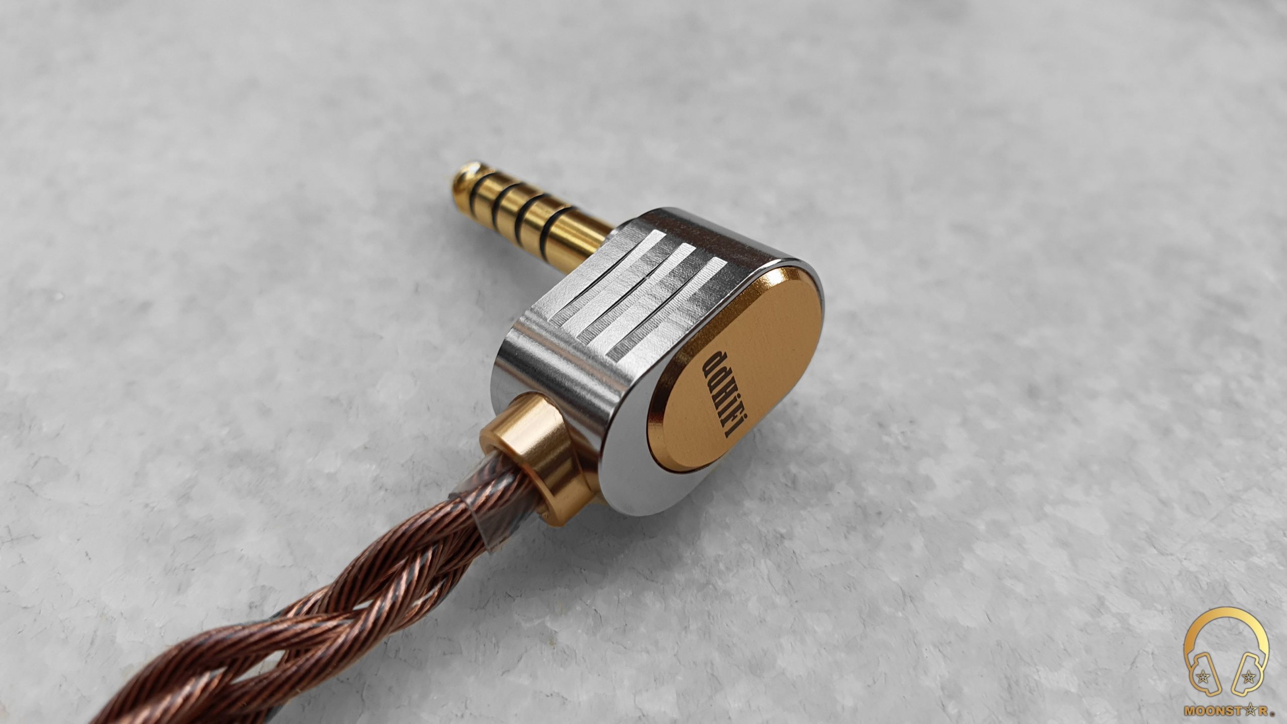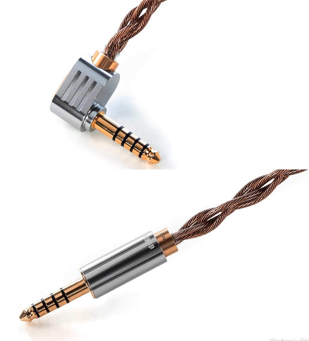 The cable comes with a gold plated 4.4mm balanced plug that you can order with a Straight profiled or with a L angled metal housing same like my review unit.