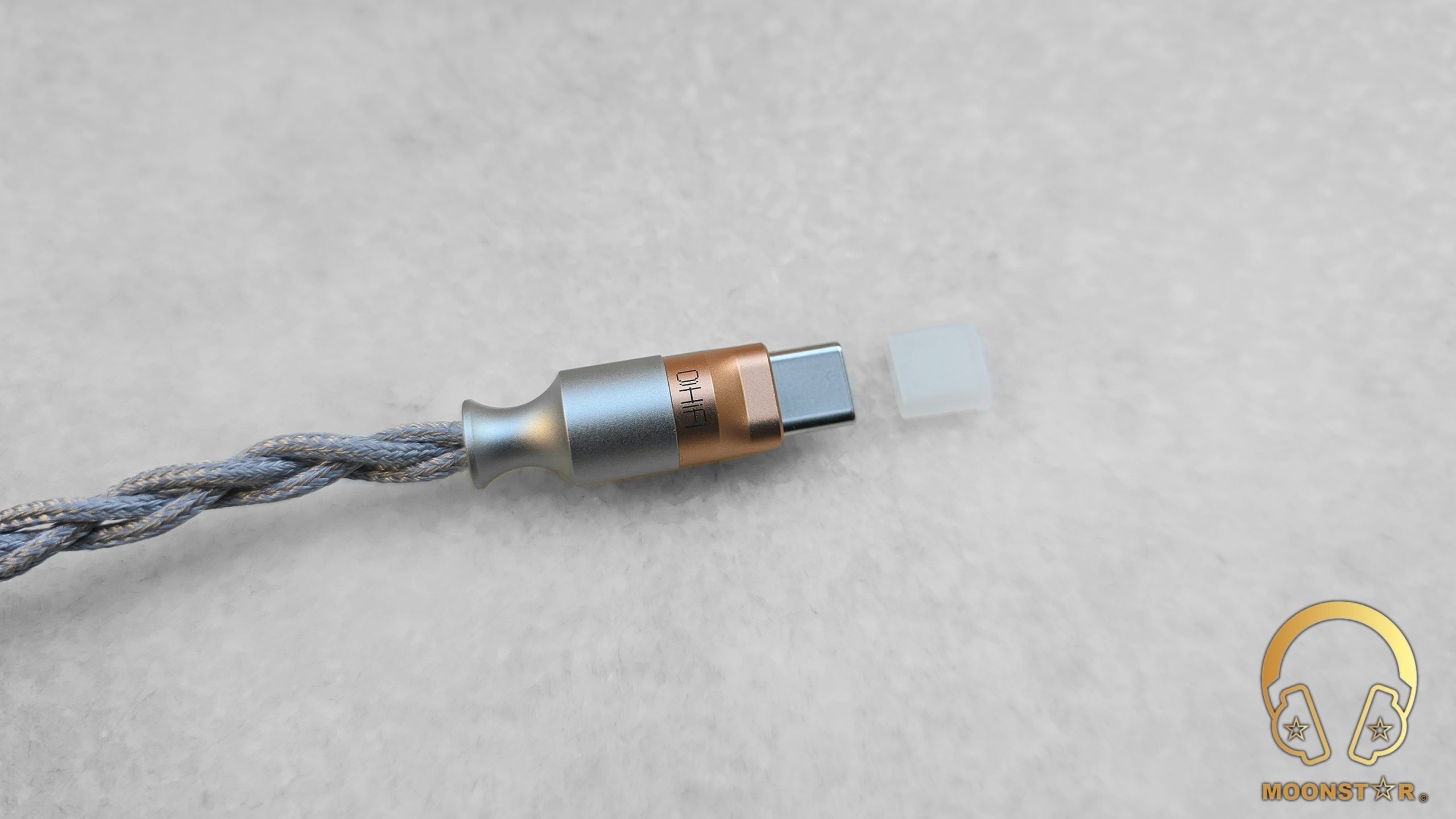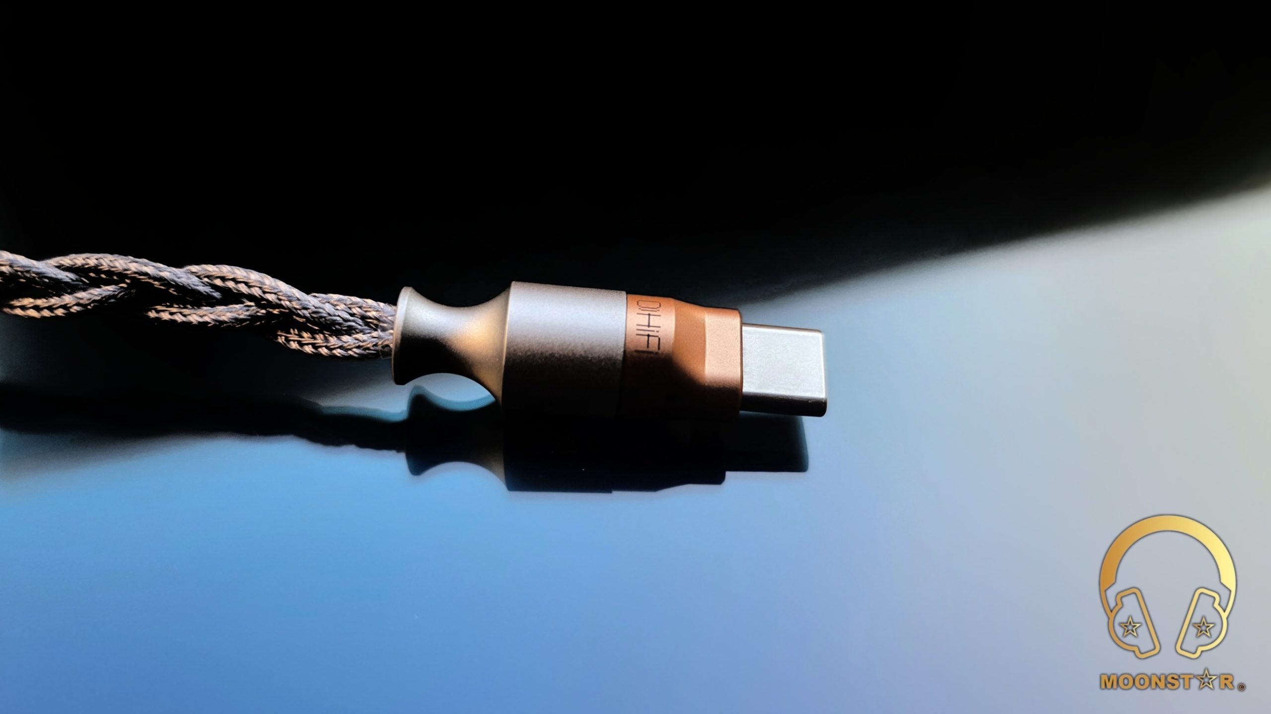 The robust USB Type-C plug features a discreet LED indicator that shows blue for standby, green for PCM, and red for DSD, adding a functional yet stylish element. While the cable is well-made, it may transmit slight noise when moved, which is minimal and easy to handle.