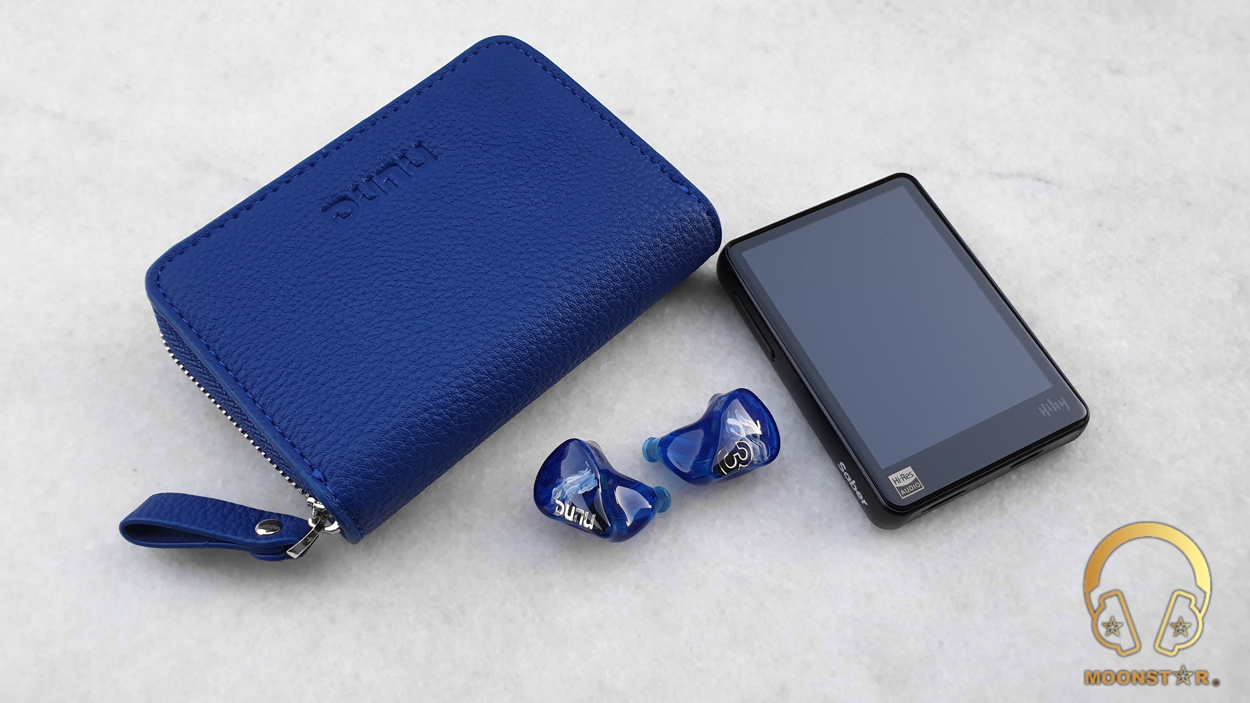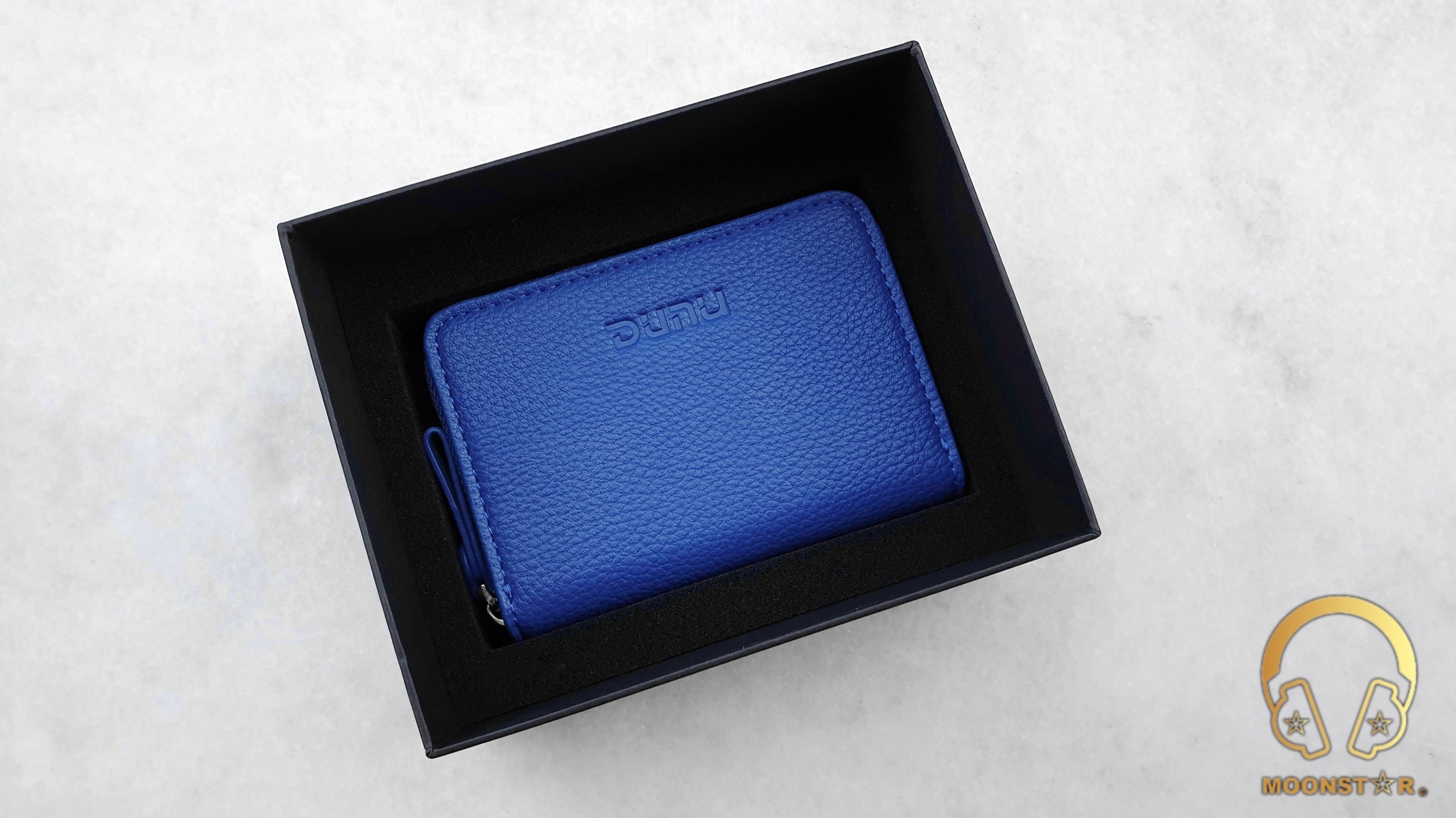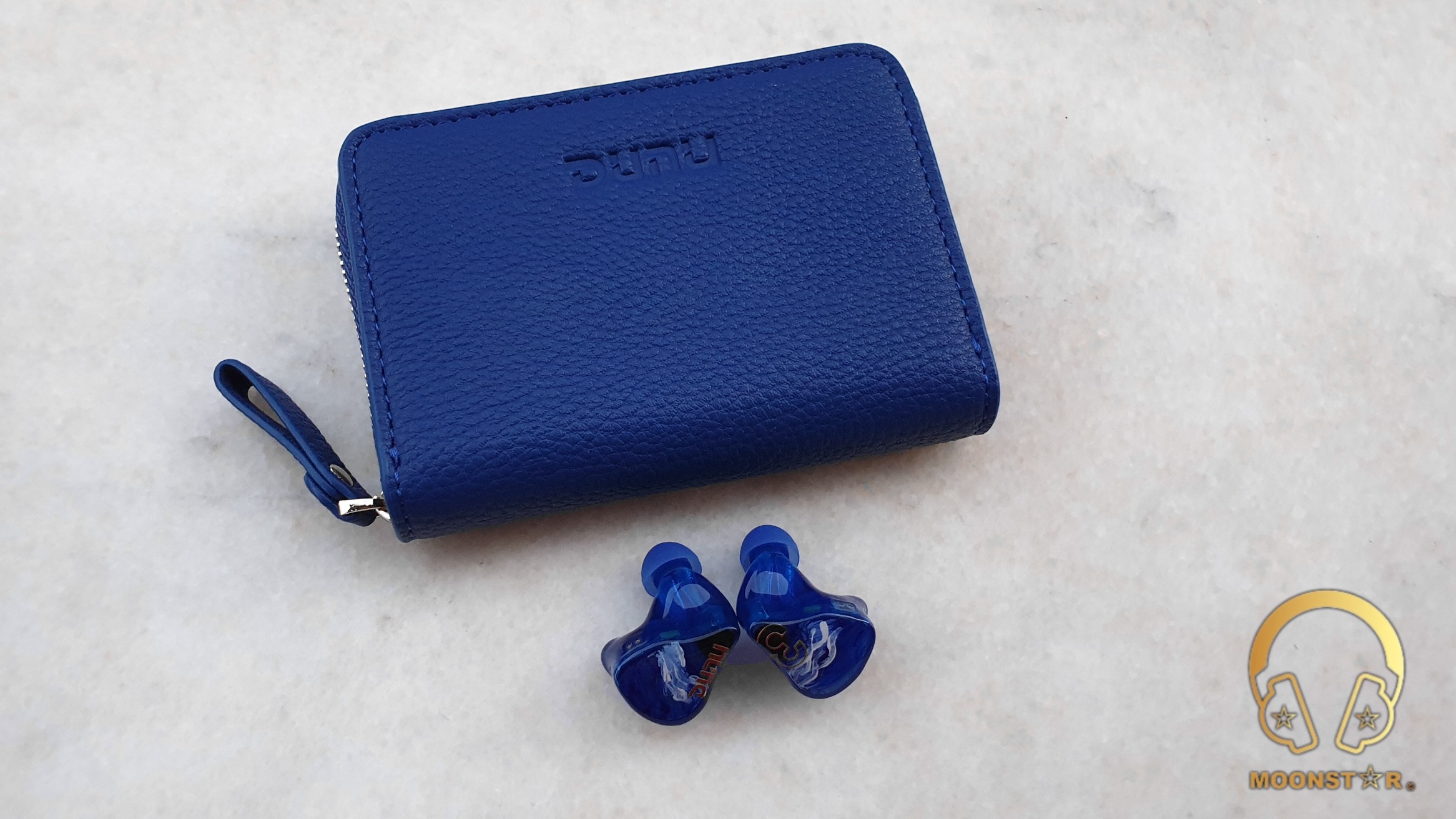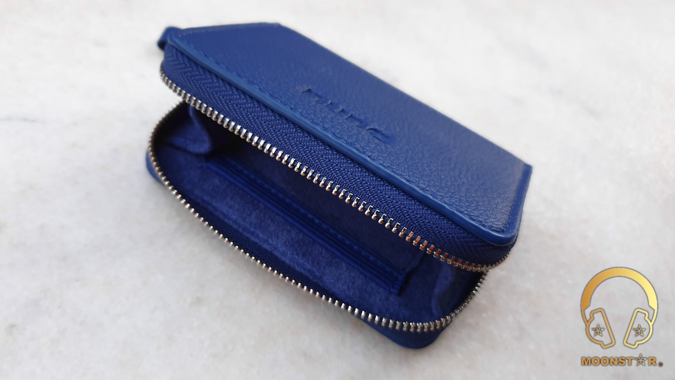 The leather case in blue color has a very nice appearance with the DUNU brand logo on the top and the ditches around the case are made faultless!