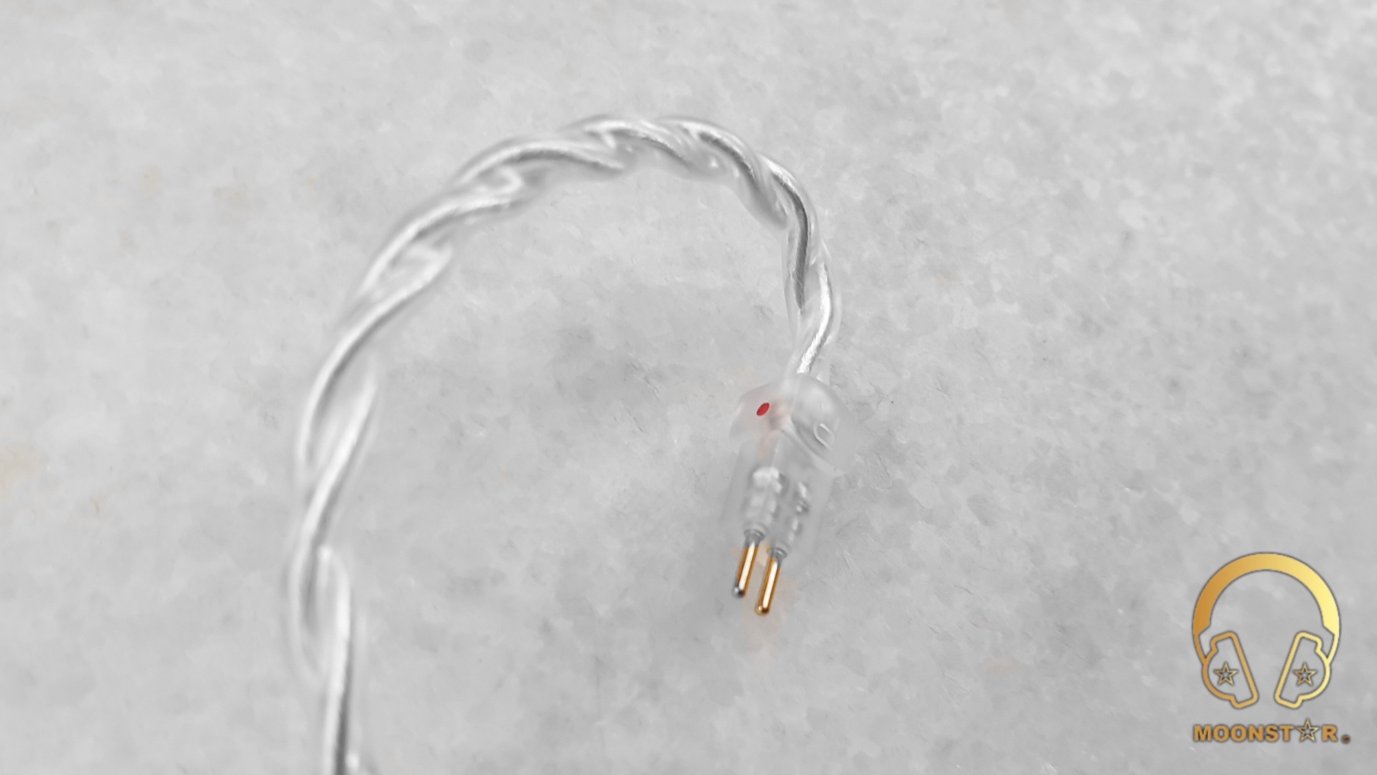 On the top of the monitor housing is 0.78mm diameter 2-Pin female connector that offers a tight fit when connected with the male connector on the cable.