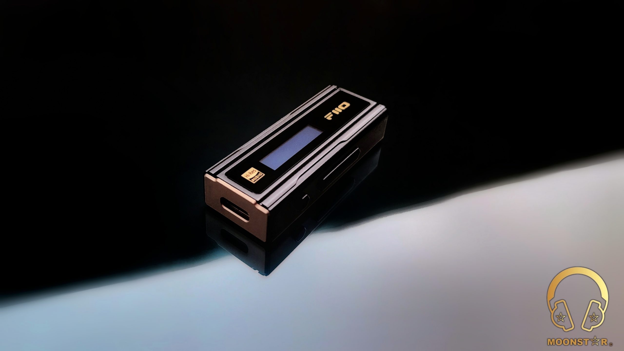 On the front of the device is a tempered glass panel that sports an OLED display, the new FiiO brand logo and a HiRes Audio branding. The OLED screen is a nice addition that displays the actual sound Signal Format, the Volume and Gain level, Digital Filter, USB and Volume Mode.