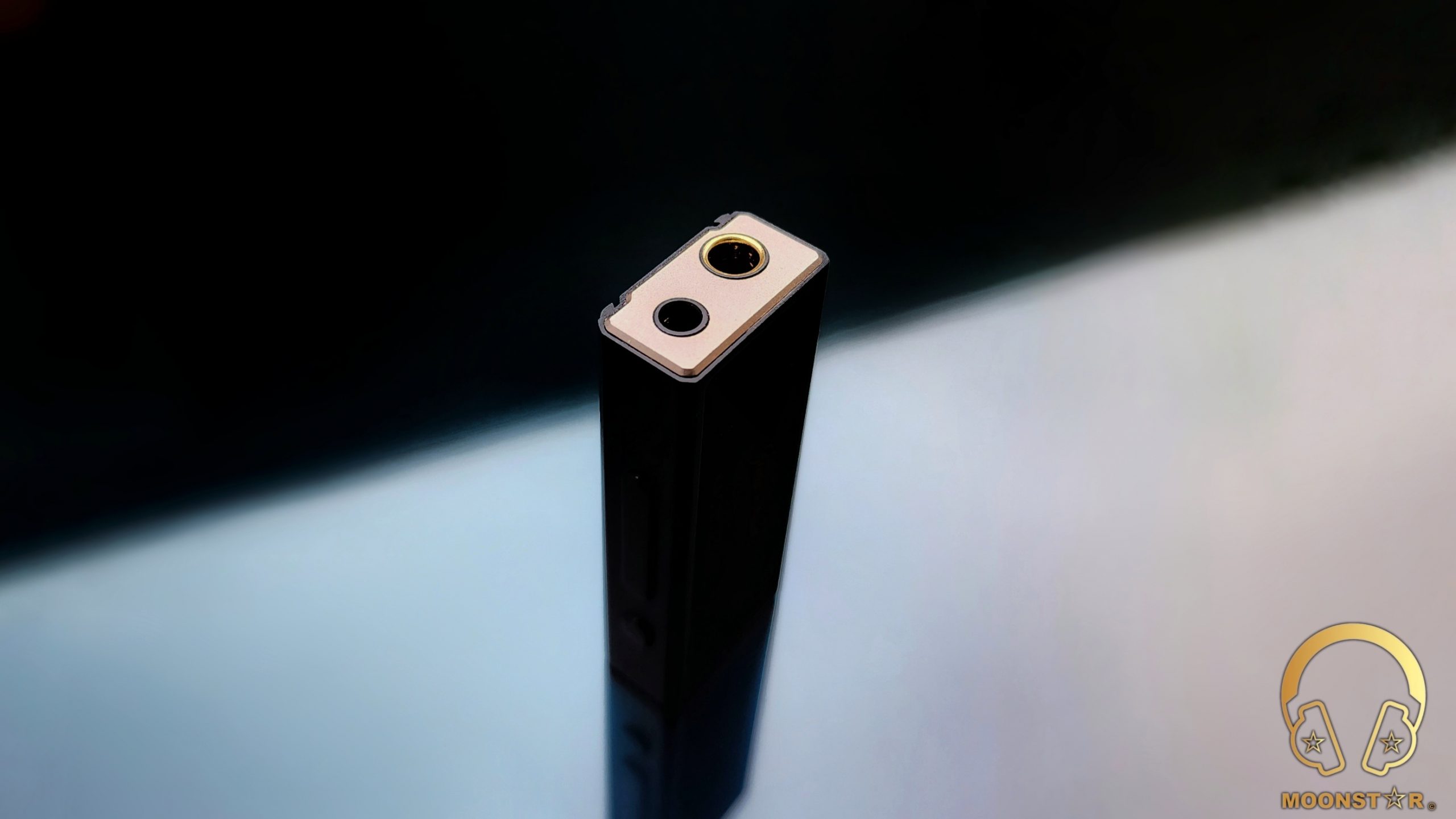 On the front of the FiiO (Jade Audio) KA5 are the 3.5mm Single Ended and 4.4mm Balanced outputs that are located on a metal plate with a nice golden surface finish.