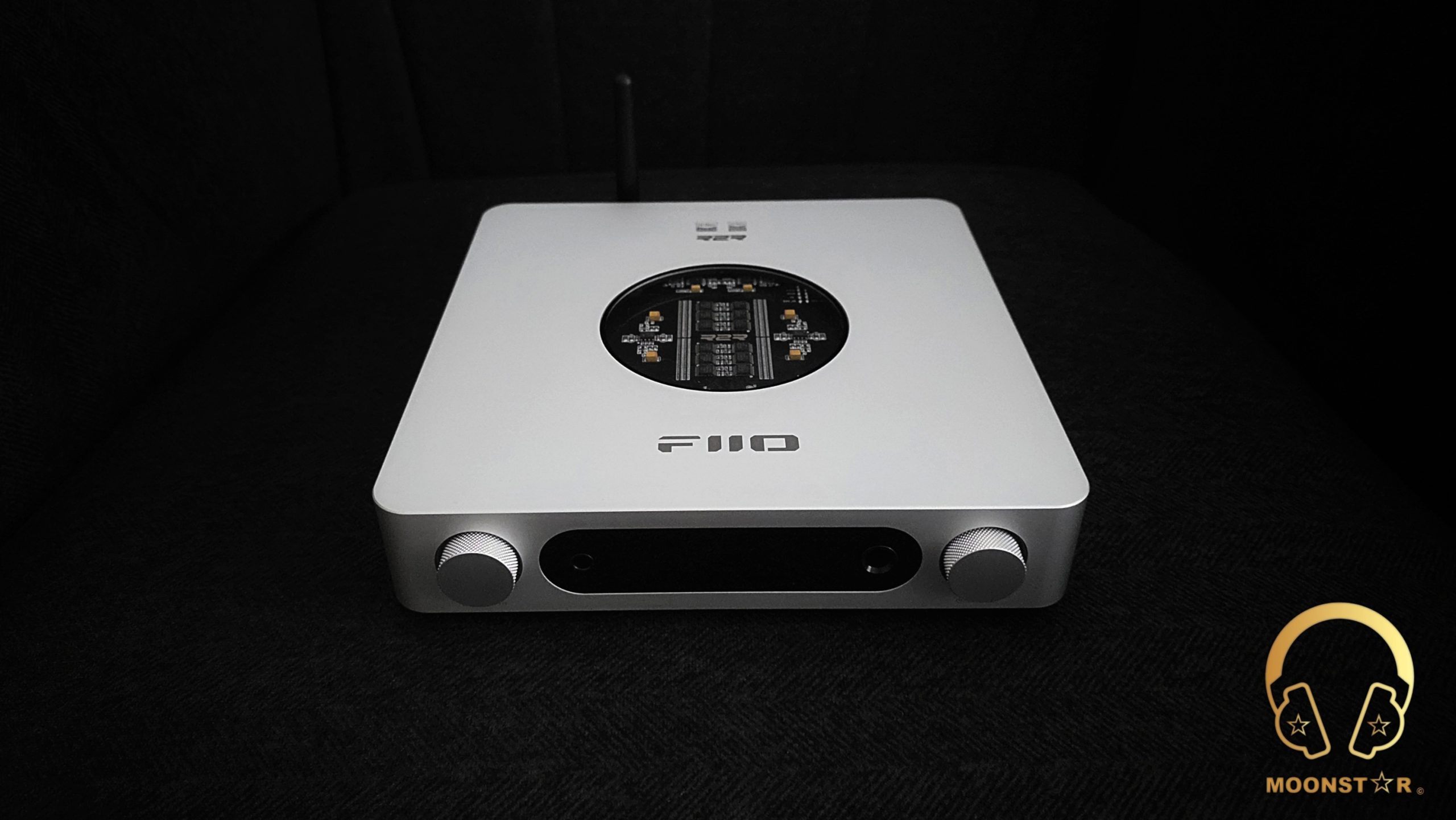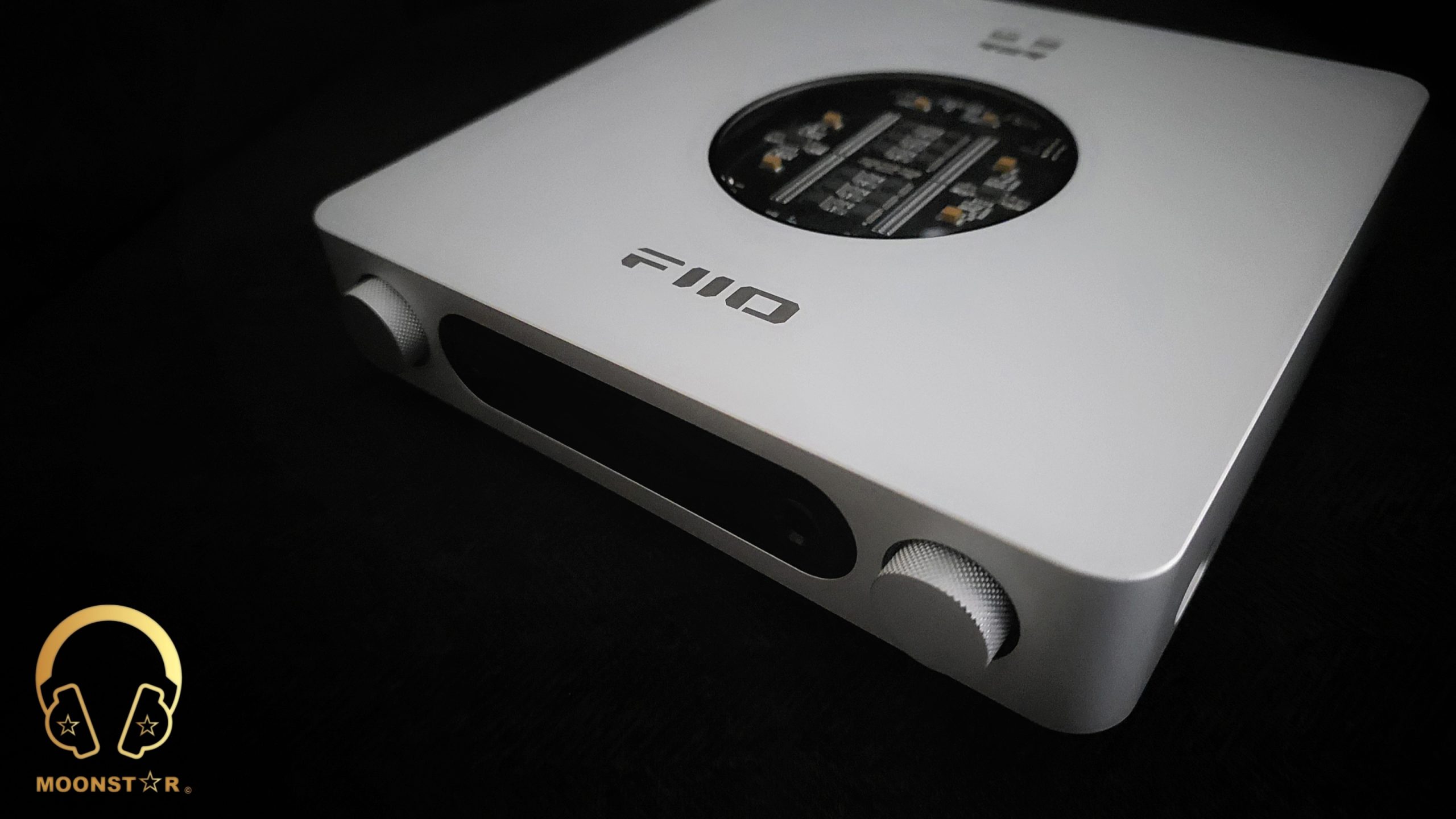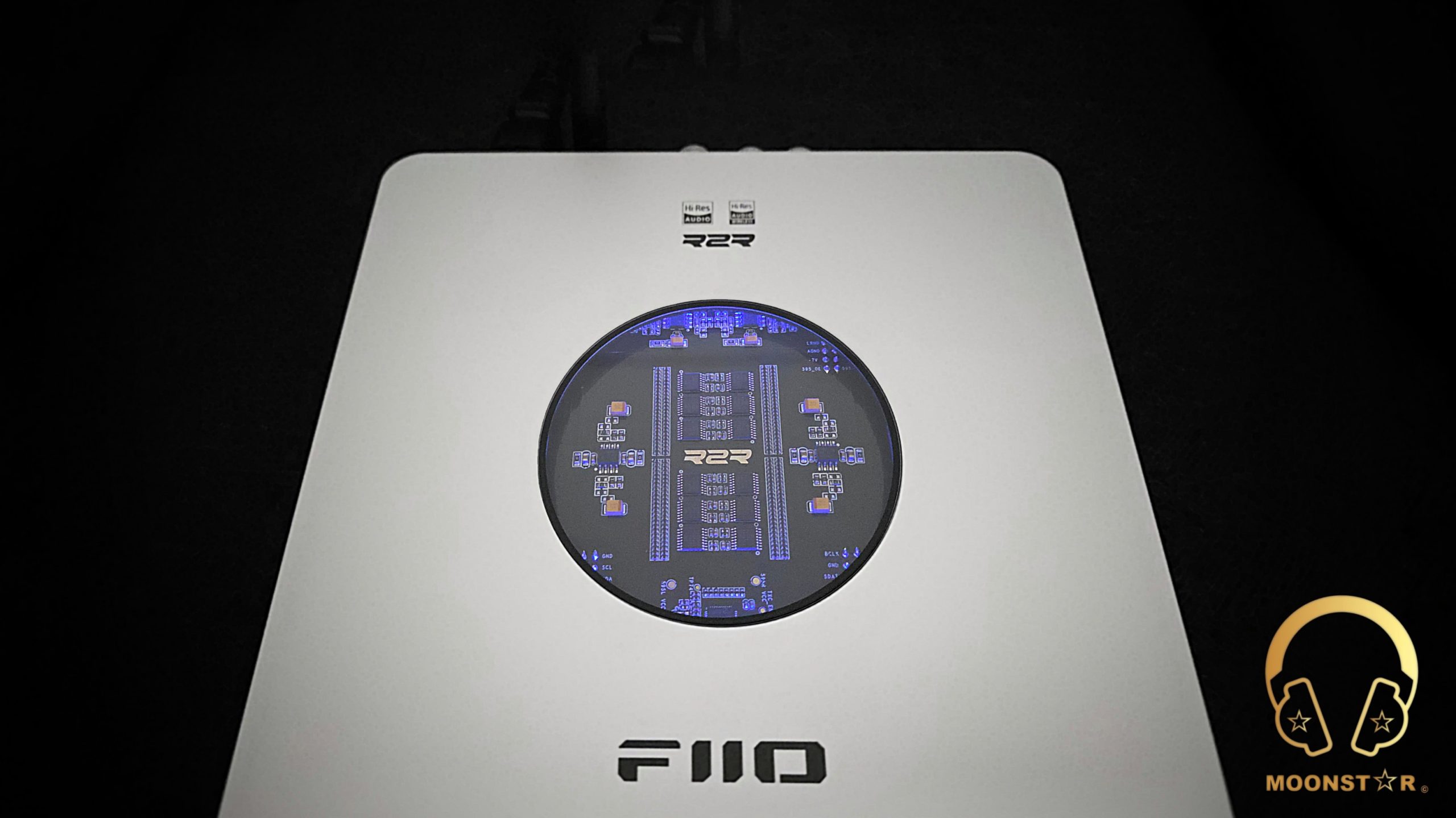 The FiiO logo is also prominently featured both on the top window’s periphery and on the front of the main chassis, reinforcing the brand identity. The overall feel is one of durability and meticulous construction, ensuring the K13 R2R looks professional in any desktop environment.