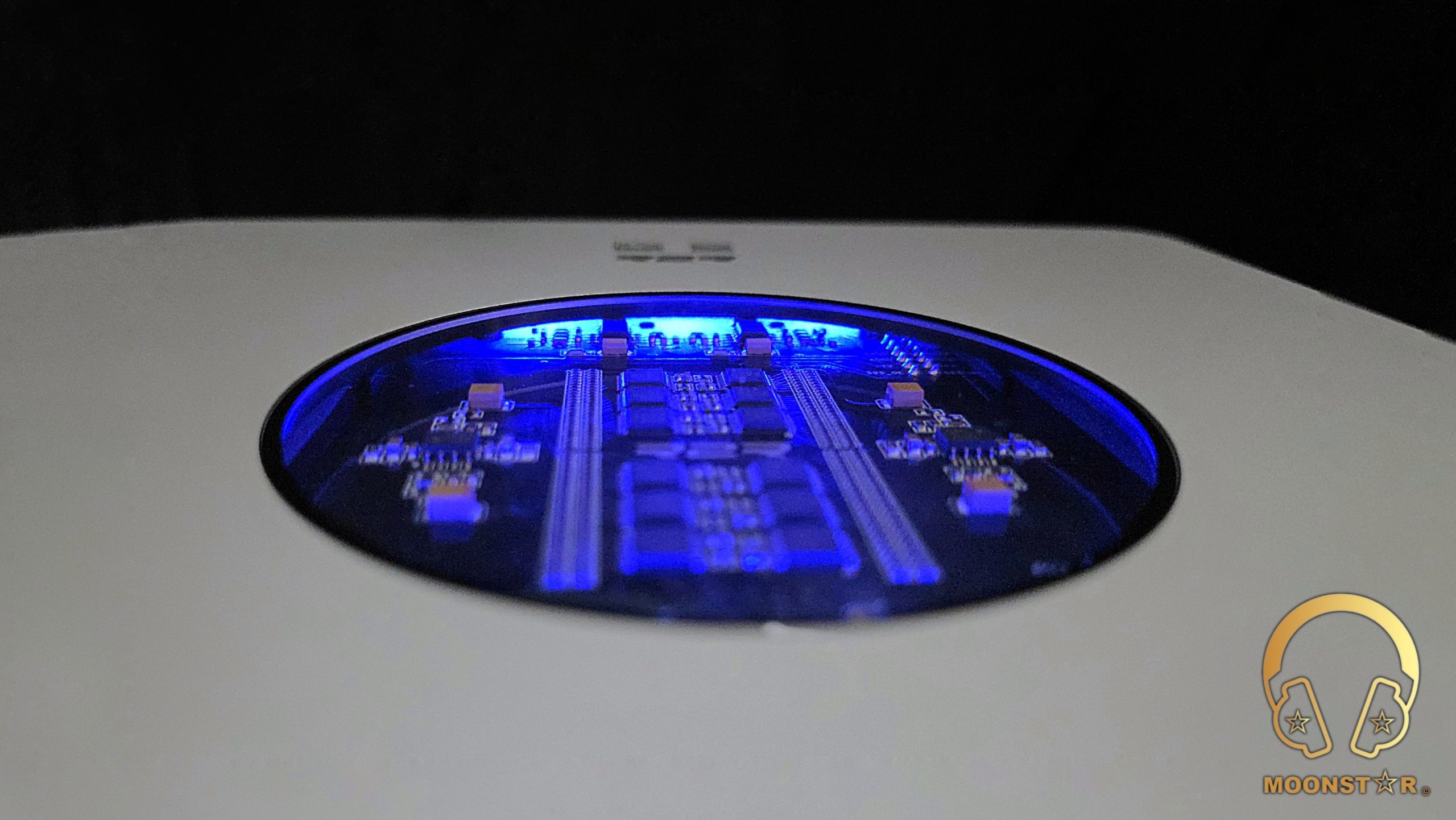 Visually, the most captivating feature is the circular viewing window located on the top panel. This ‘skylight’ offers a direct and often illuminated view of the discrete R2R resistor network printed on a specialized circuit board inside.