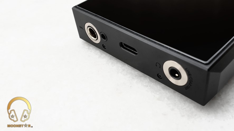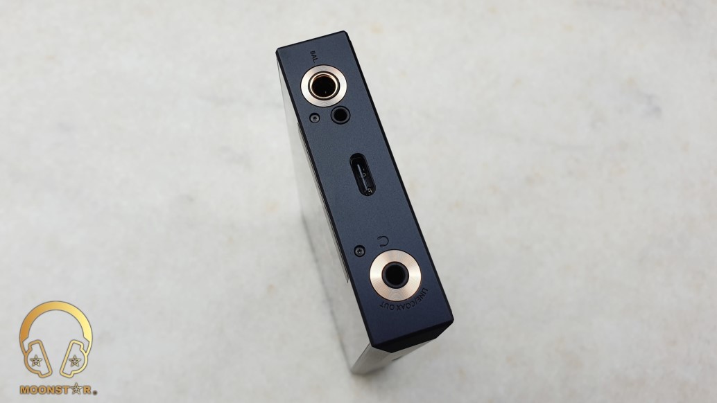 At the bottom of the chassis are the 4.4mm TRRRS Pentaconn Balanced out, the 2.5mm TRRS Balanced out, the USB Type-C connector that acts as Digital Out/Data/Charging Port and the 3.5mm headphone jack which shares the Phone Out, Line Out and SPDIF outputs.
