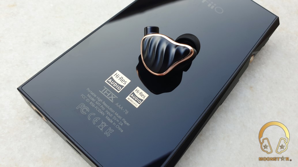 Here are also the FiiO brand logo, some industrial certificates (CE, FCC, etc.) and the THX, Hi-Res Audio/Wireless brandings.