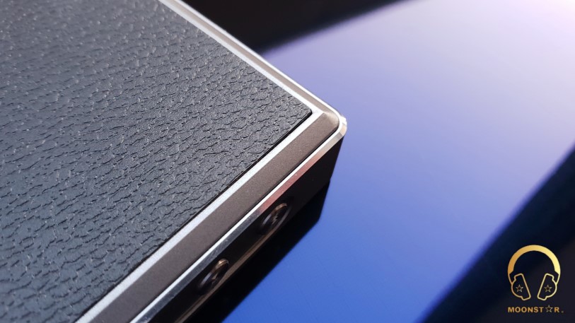 At the backside of the Q5s is a pleather (polyurethane leather) coating that reminds me to those of the Sony NWZ-ZX2 which helps for a better grip and additional safety.