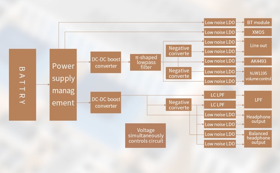 The Q5s is bundled with the AM3E amp module with both single-ended and balanced 2.5/4.4 outputs. The Low Pass Filter (LPF) of the Q5s has 2 x OPA1642 (dual) Operational Amplifiers which have ultralow distortion and low-noise abilities.