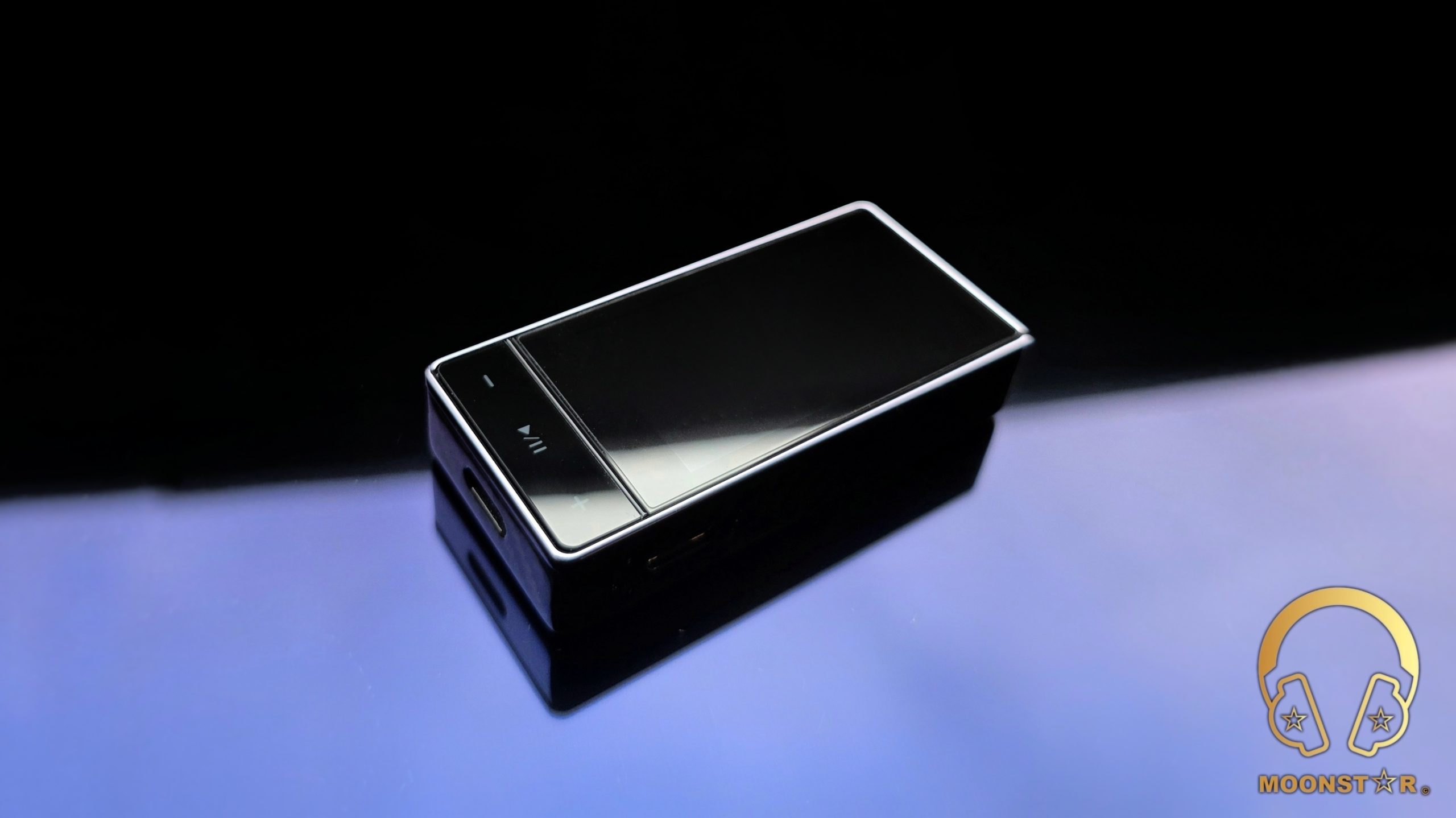 Below the screen are the three primary control buttons: Volume Down (-), Play/Pause (►||), and Volume Up (+). These buttons provide satisfying tactile feedback and offer a surprisingly deep level of control.