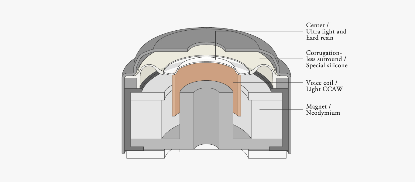 - Driver Configuration : 6mm diameter “f-Core for Wireless” Dynamic Driver