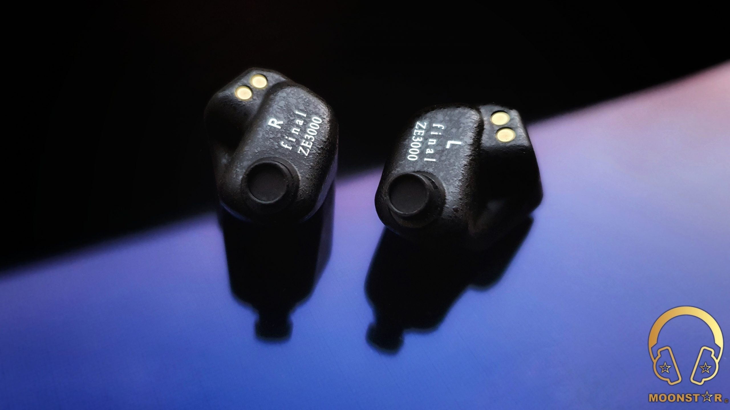 At the inner surface of the ZE3000 is the slightly angled sound nozzle, the battery charging interface, the L (Left) or R (Right) markings and the Final ZE3000 branding.