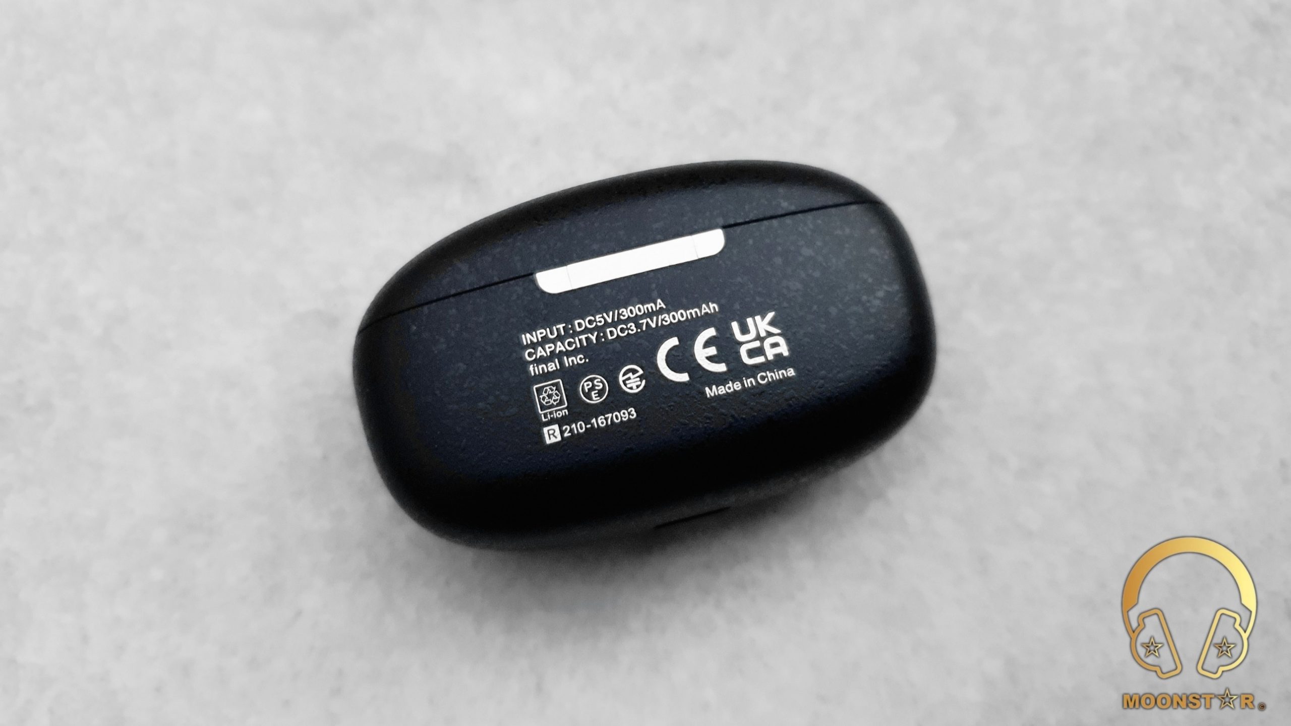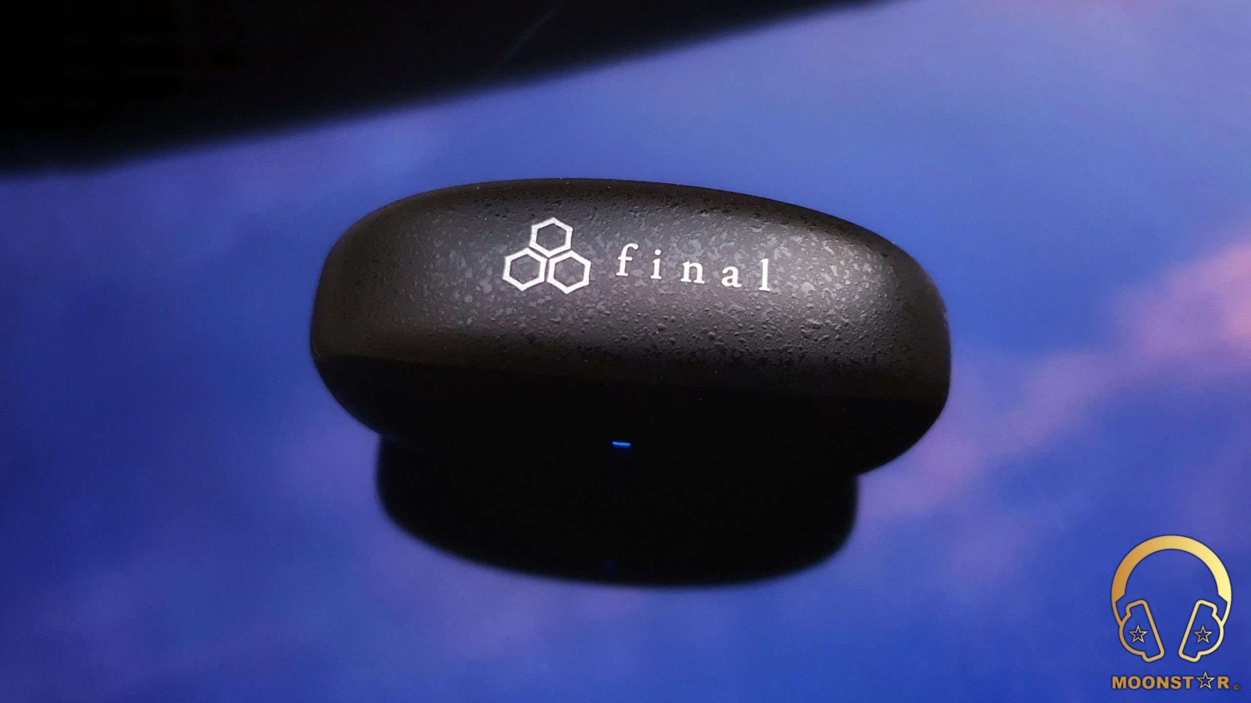 On the front of the earbuds is the Final brand logo and a small opening that shares the microphone for voice conversations and a small LED indicator that gives information’s about the current status, such like pairing, battery, etc.