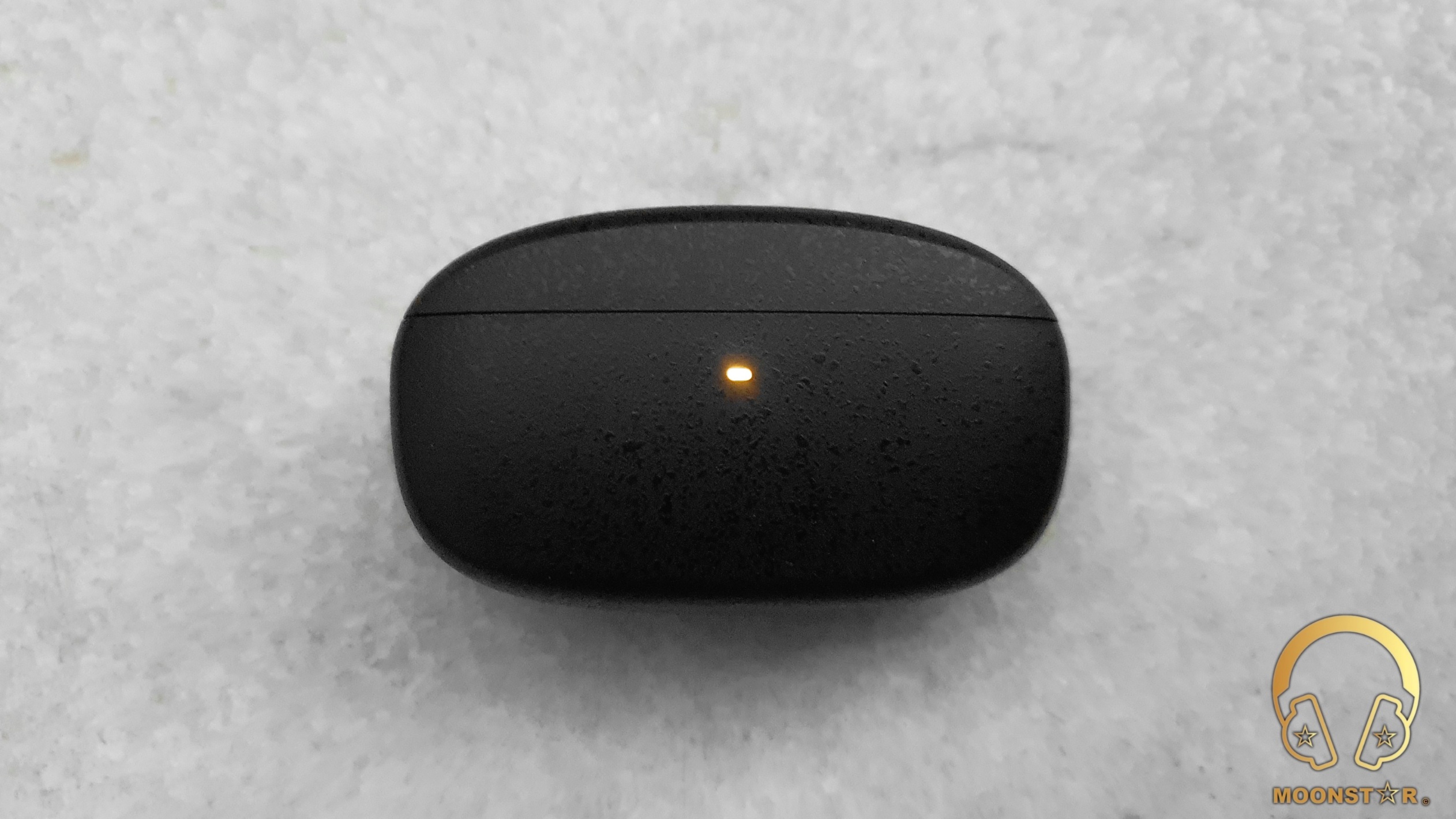 On the front surface of the charging case is a small LED light indicator that gives information about the charging status of the case and earphones.