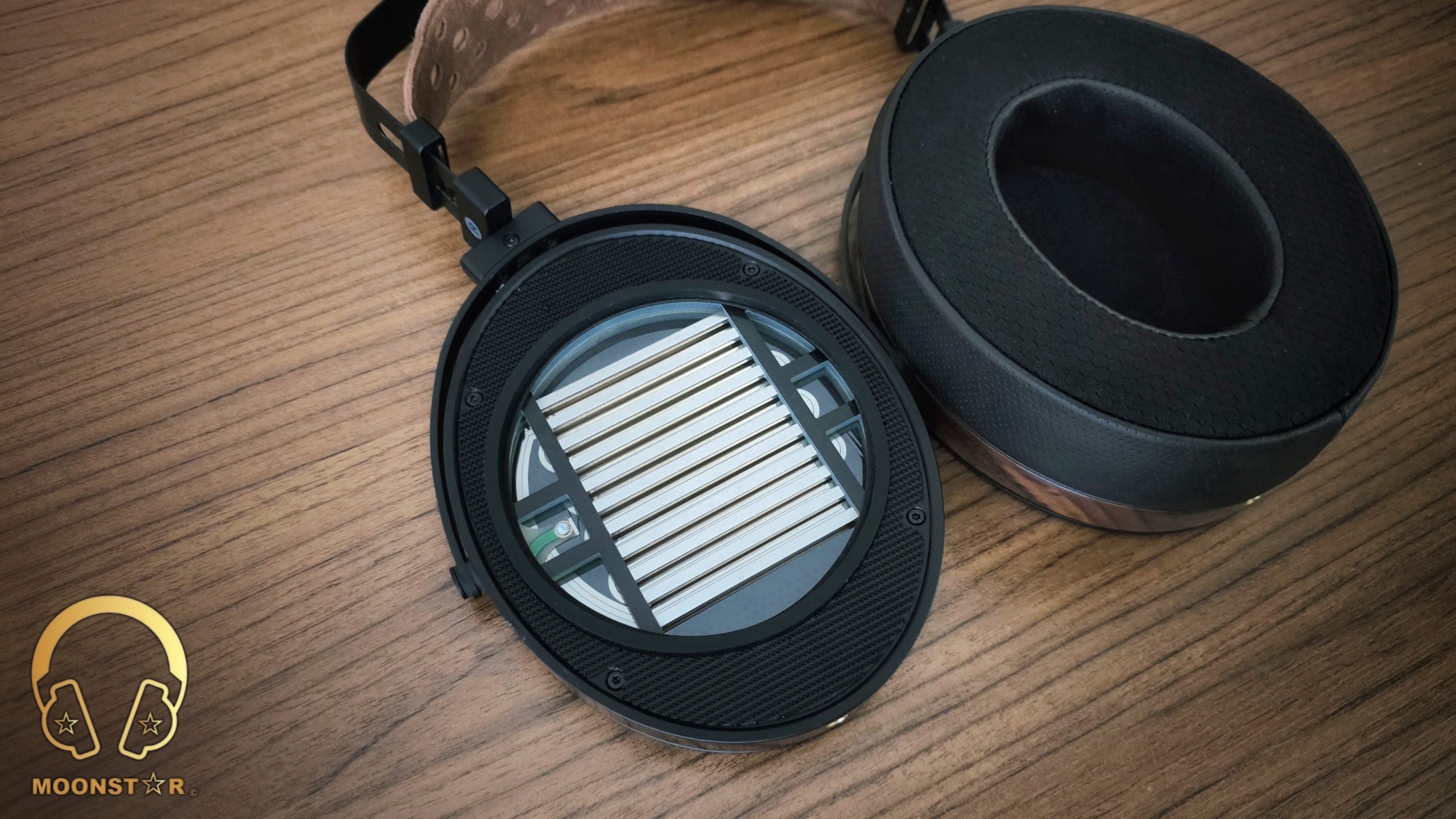The aluminum frame, crafted via CNC machining, provides a solid structure, contributing to the headphone’s total weight of 550g including the cable. A subtle S-shaped pattern on the ear cup grille serves as a decorative element, adding a minor visual distinction without dominating the overall look.