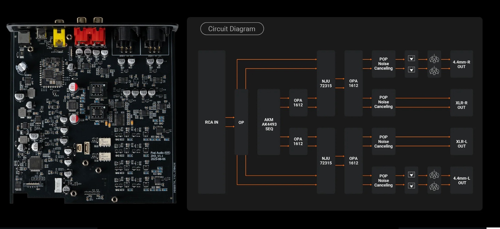 - Chipset: XMOS XU316, AKM4493SEQ, OPA1612 x 4