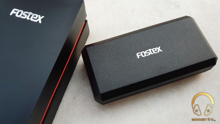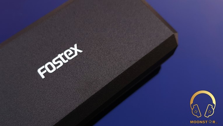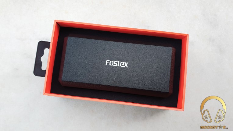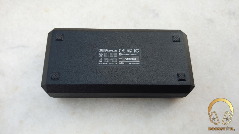 On the top of the case/cradle is the Fostex logo in silver color, while at the back side is a label with technical information’s and certifications and rubber stands at each corner.