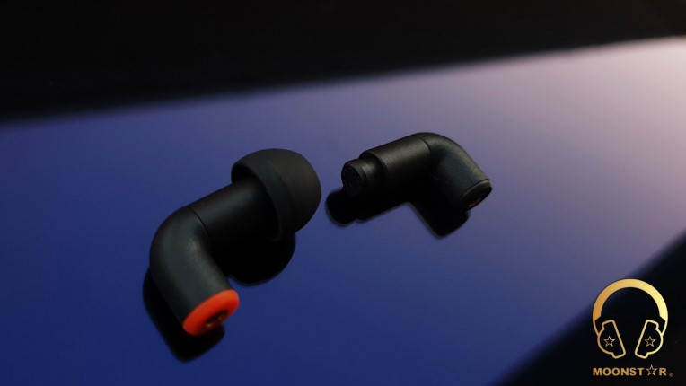 The monitor has an L angled shape and features the sound nozzle with a short profile. On the top of the sound nozzle is a filter in black color that prevents the insertion of unwanted particles like dust, ear-wax, etc.