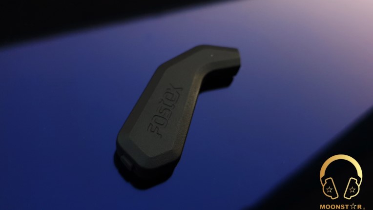 On the front of the main module are a LED status lighter and the Fostex logo which is the sensor area of the device. This area is a touch sensitive surface that helps to make some commands like slide up or down with your fingers to increase or decrease the volume.