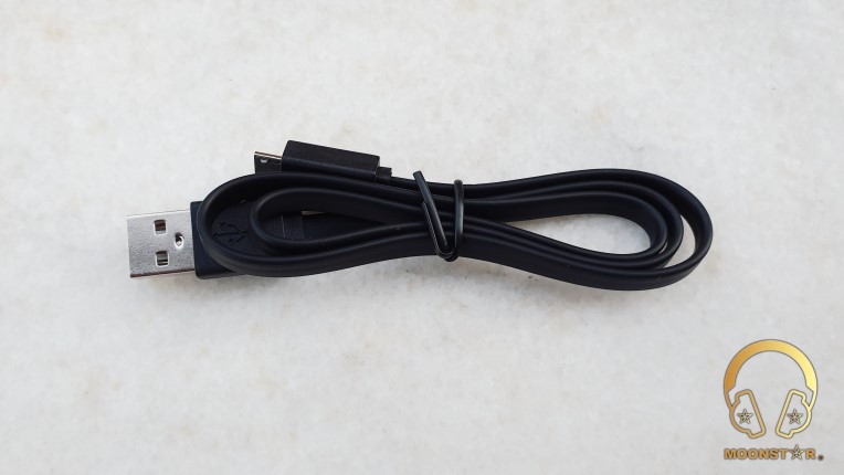 The charging case has no build in battery so you need to connect it to the Micro USB charging port which is at the left side of the cradle. Near the Micro USB port is a small LED that lights up when you connect it to a wall charger or to a device with a power supply.