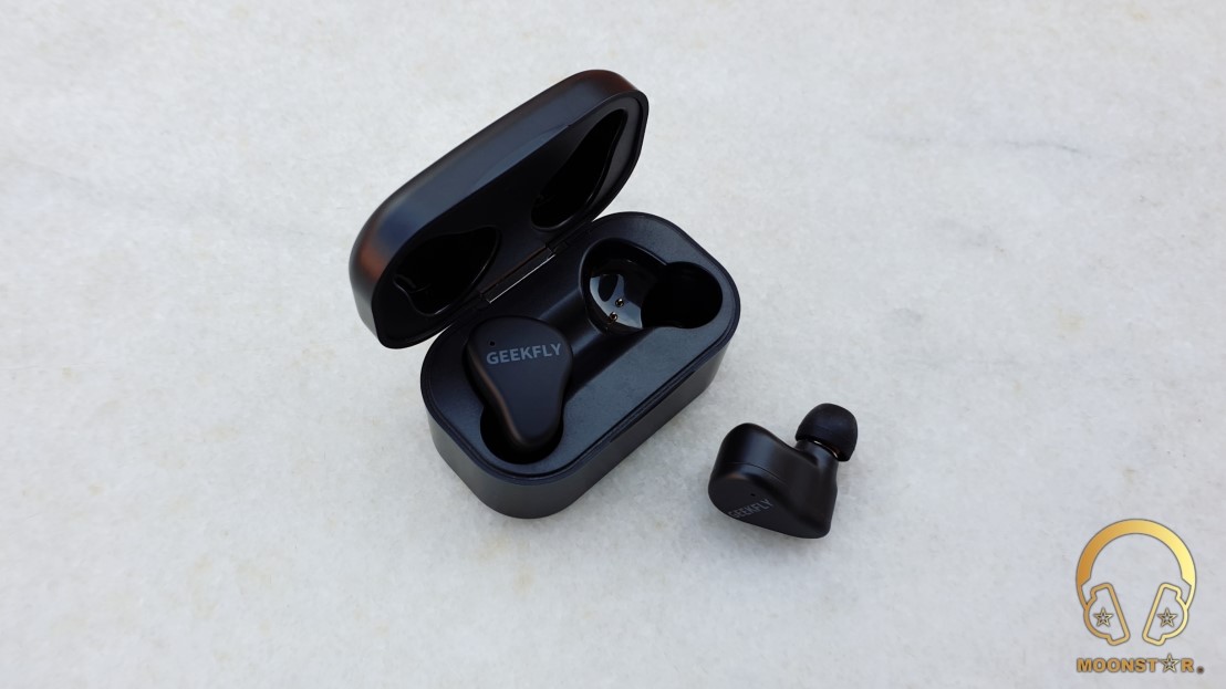 The GEEKFLY GF8 comes with a small carrying & charging case like most TWS IEM’s on the market which is also made of the same black plastic material with a smooth surface. On the top of the Case is the GEEKFLY product branding.