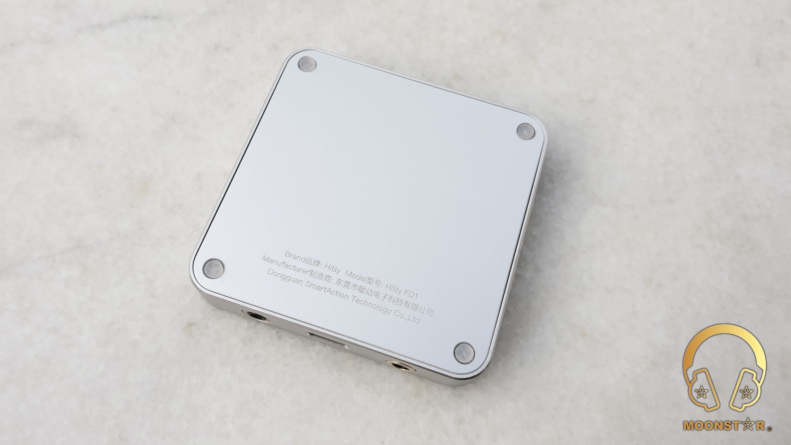 The FD1 is also a pretty compact device with dimensions of 61.5×61.5x 9.5mm and weights approx 71.5grams. On the front of the FD1 is the HiBy band logo that is engraved to the surface of the device which gives it a premium feel.