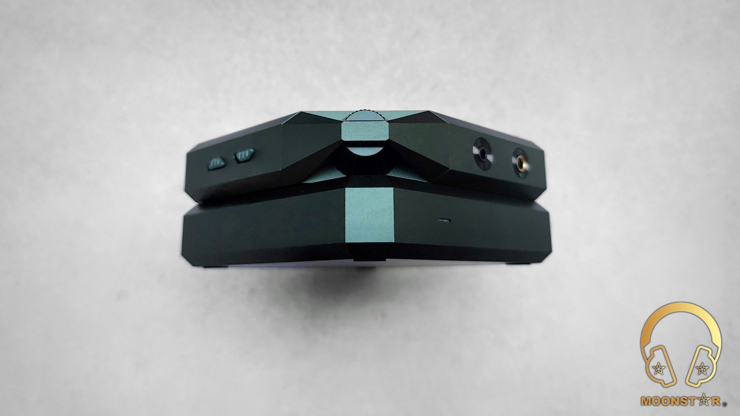The right surface of the DAC/AMP unit provides connectivity options for both standard and balanced headphones, which are the 3.5mm out with CTIA support for TRRS compatible headphones and a 4.4mm balanced headphone out. The power supply unit has a LED status indicator that serves as a visual cue for the device’s operational status. When illuminated, the LED indicates that the power supply unit is powered on and ready to deliver electricity to the DAC/AMP unit.