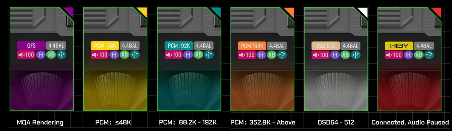 The HiBy FD5 is equipped with a high-performance DAC section. The device utilizes a QUAD (4 DAC Chips) AK4493 DAC array from Asahi Kasei. The AK4493 is a premium 32-bit 2-channel DAC that supports the VELVET SOUND technology. The FD5 is capable of handling a wide variety of PCM and DSD files, including PCM up to 32-bit/768kHz and Direct Stream Digital (DSD) formats up to DSD512.