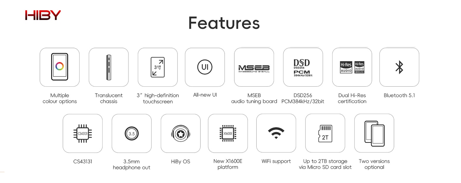 - + User-Friendly Interface & Software Features (HiBy OS, MSEB, etc.)