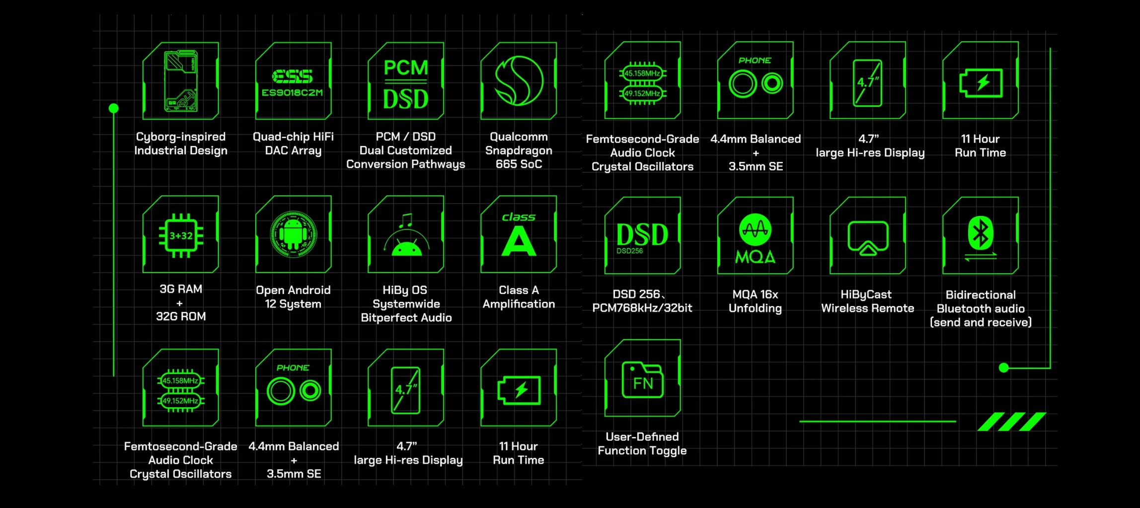 - + HiBy Ecosystem (HiBy Music, HiBy Cast, MSEB sound processing)