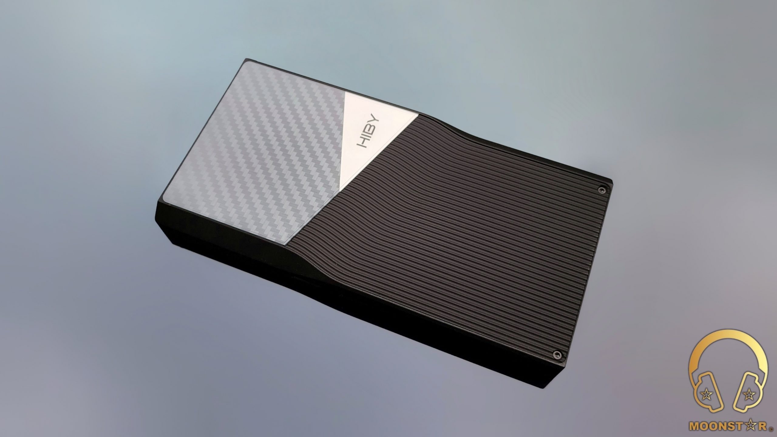 The aluminum part that has wave shaped channels that reflects the waves of the see. The HiBy branded plate on the other hand should be representing an Island in the see, while the carbon fiber pattern surface is the starry sky in the night.