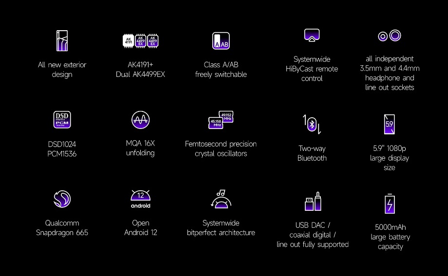 Moreover, the R6 PRO II is equipped with Snapdragon’s pretty powerful and battery efficient SD665 Octa-Core SoC that is supported with 4GB of RAM + 64GB of RAM in order to get a fluid Open Android 12 OS experience. Other remarkable features are 16x MQA support, a Systemwide Bit-Perfect Architecture, HiByCast Remote Control, Bi-Directional Bluetooth Connectivity, High-Resolution PCM 32-Bit/1536kHz & Native DSD1024 Decoding and many more.