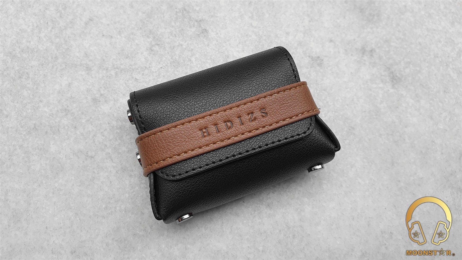 The stylish leather case is of high quality and has a colour combination of black and brown with the Hidizs brand logo on the front.