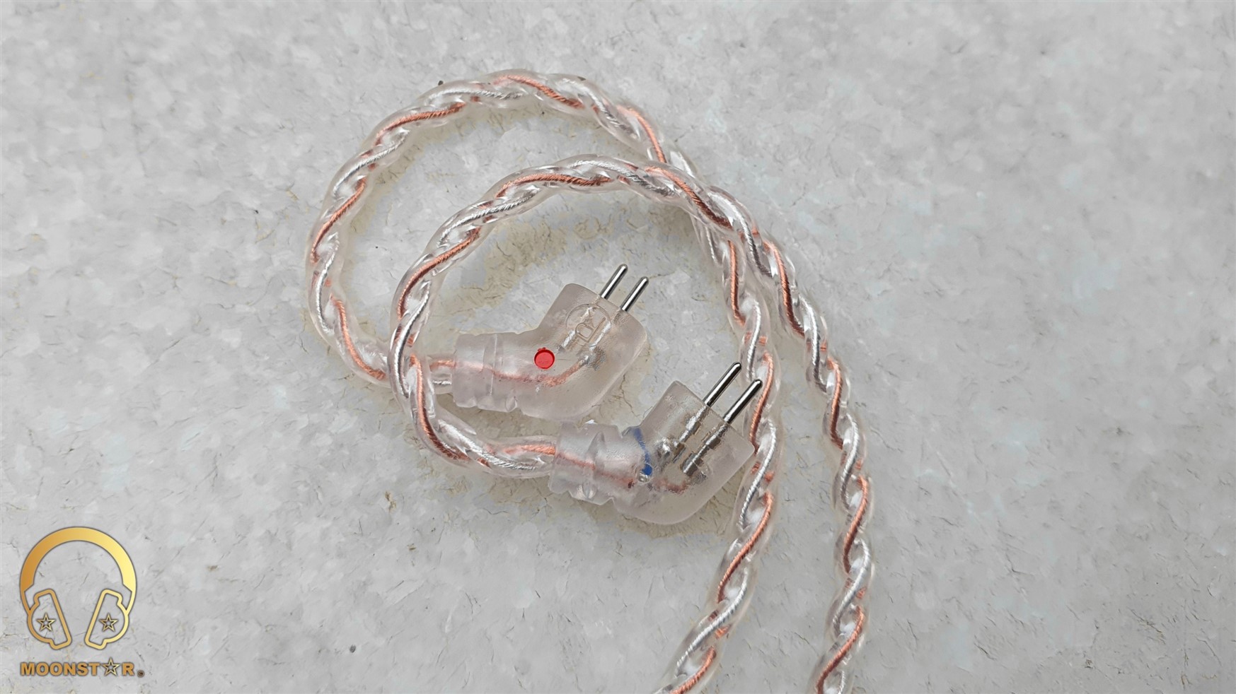 The cable features 0.78mm diameter 2Pin male connectors that do fit pretty tight to the female connectors that are located on the top of the monitor shell. Each connector features a transparent plastic housing and each side has a left & right indicators. The indicators are not very visible which is my only complain about the cable.