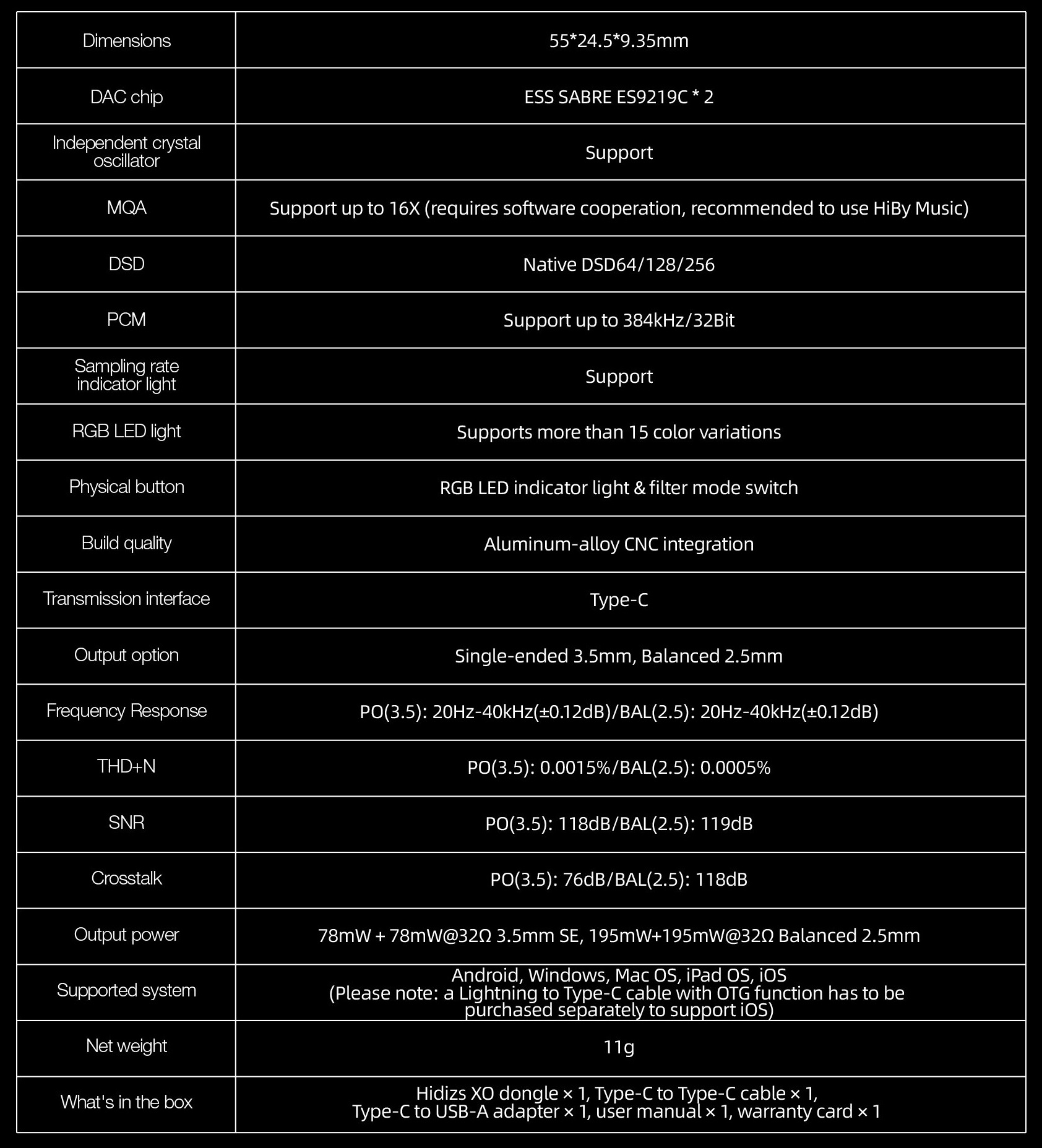 - 1x Hidizs XO USB DAC/Amplifier Dongle