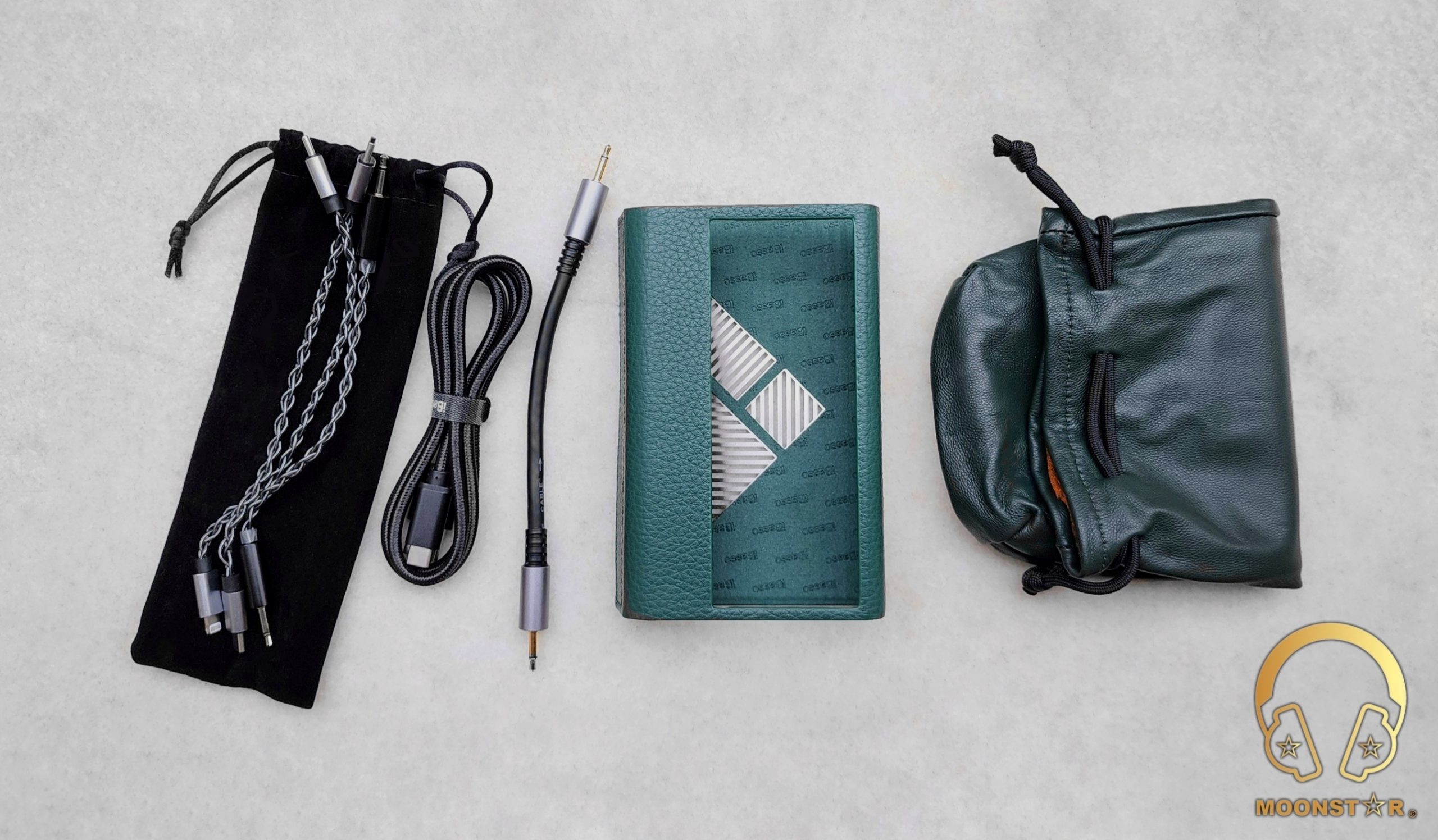 But the crown jewel of the accessories is the elegant green leather case. This wraparound design features a large opening on the top that showcases the device’s glass panel and provides easy access to its 1.2″ OLED display.