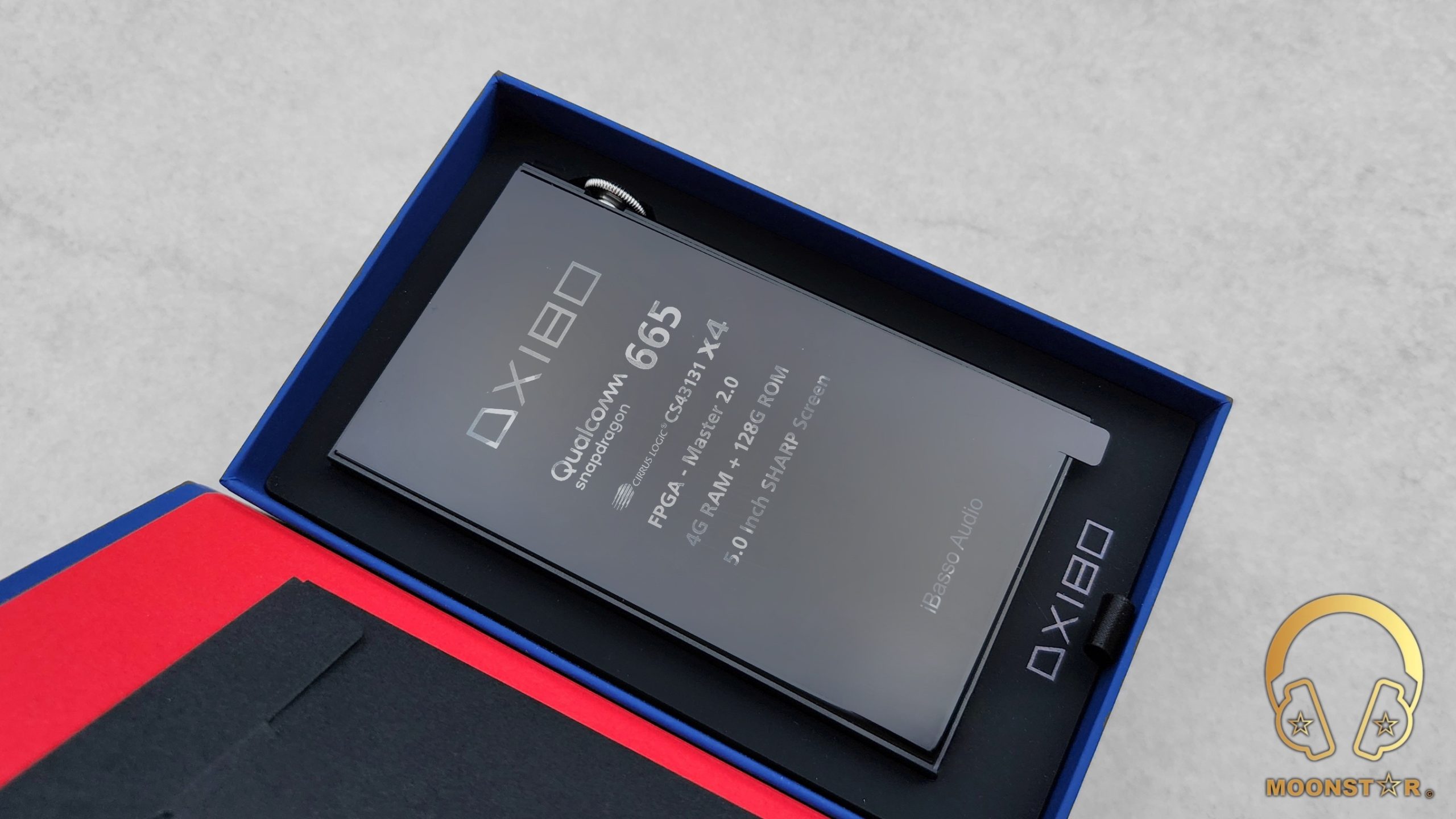 The iBasso DX180 comes in a relatively small, rectangular box with a stylish blue finish. It’s housed within a blue cardboard sleeve that features brandings with an iridescent finish on the top.