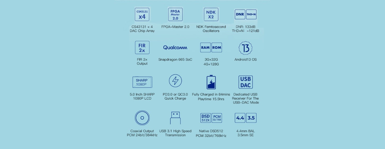 - DAC: Quad (x4) Cirrus Logic CS43131 DAC chips
