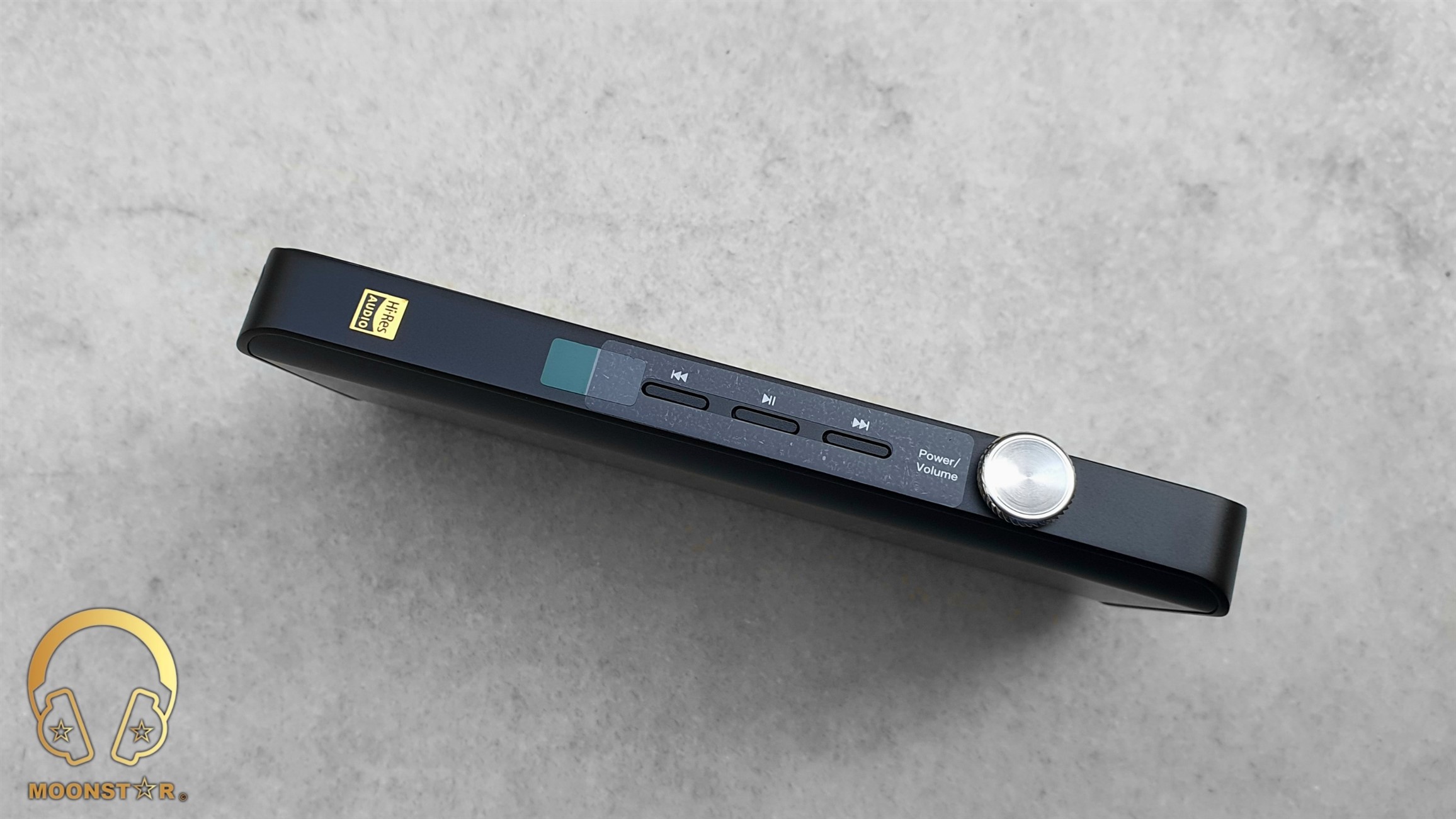 Here are also three physical buttons, which are the next/fast forward, play/pause and the previous/rewind buttons.