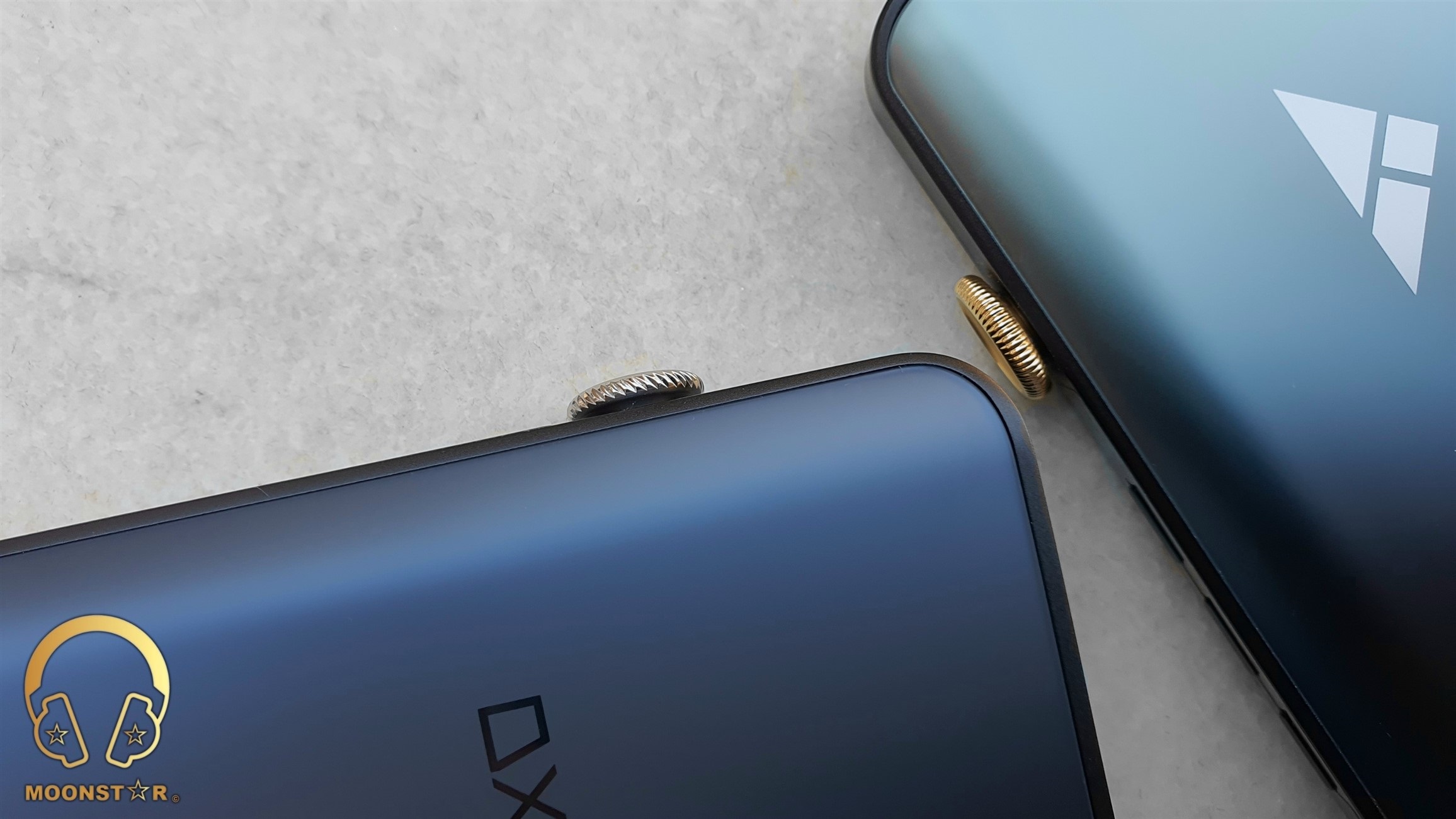 The right side of the device has a slightly angled profile same like the DX300, which features a “Multifunctional Control Wheel” in silver color that has a better grip, feedback and feel compared to the DX300.